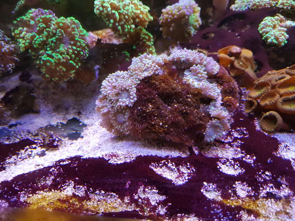Efter 8 dage på ferie er mine koraller skrumpet. Mine scan plejer at ligge hen af bundlaget. Nogen der kan se hvad det er for nogle alger der tager pladsen.