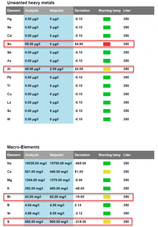 Nogen der har set dette før? Jeg kan se at det åbenbart er rimelig normalt at have tin (sn) og aluminium (Al) i sit akvarie. Men nogen med personlig erfaring inden for denne relativt specifikke kemi af stoffer, som vi ikke normalt tester for?