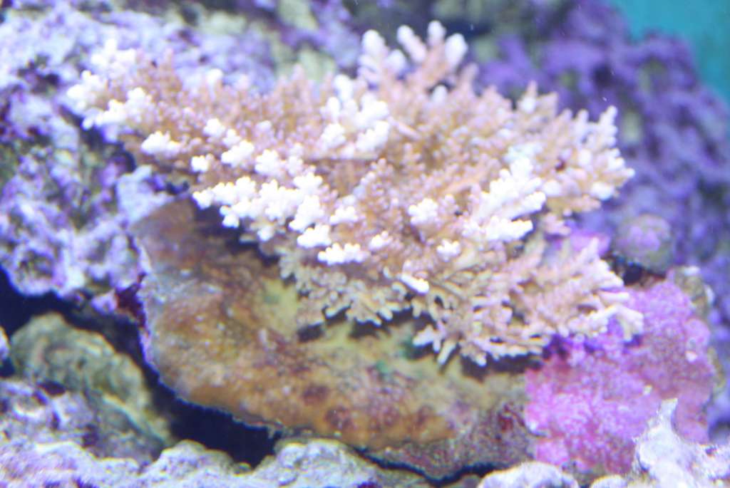 Så jeg har ikke haft fingrene i baljen i lang tid efterhånden, ja ud over at lime lidt koraller på plads, jeg er meget tilfreds med måden jeg hængte min grønne acro fra Australien. Den fik plads på mit "bedste" sted, eller der hvor jeg regner med at montere de mest eksotiske koraller. Derfor min min SSC lov til at blive i et stykke, så den med tiden kan komme at dominere lidt, og dominere kommer den at gøre, det ses desværre ikke på billederne (heller ikke på de nærbilleder jeg tog) men den er ved at komme sig rigtig fint. Den pastelgrønne grundfarve kommer tydeligt frem på den nye skud og topperne får fine røde farver, måske mere hen mod rosa, men jag håber den røde farve bliver mere tydelig.