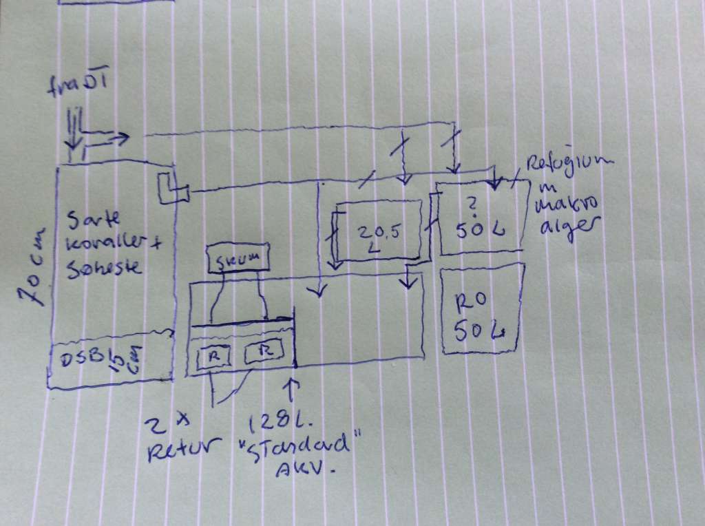 “Søjlen” m søheste og ENTEN koraller, ELLER makroalger.... OG “hovedsumpen” med skummer og retur, er permanente dele af det samlede system.
