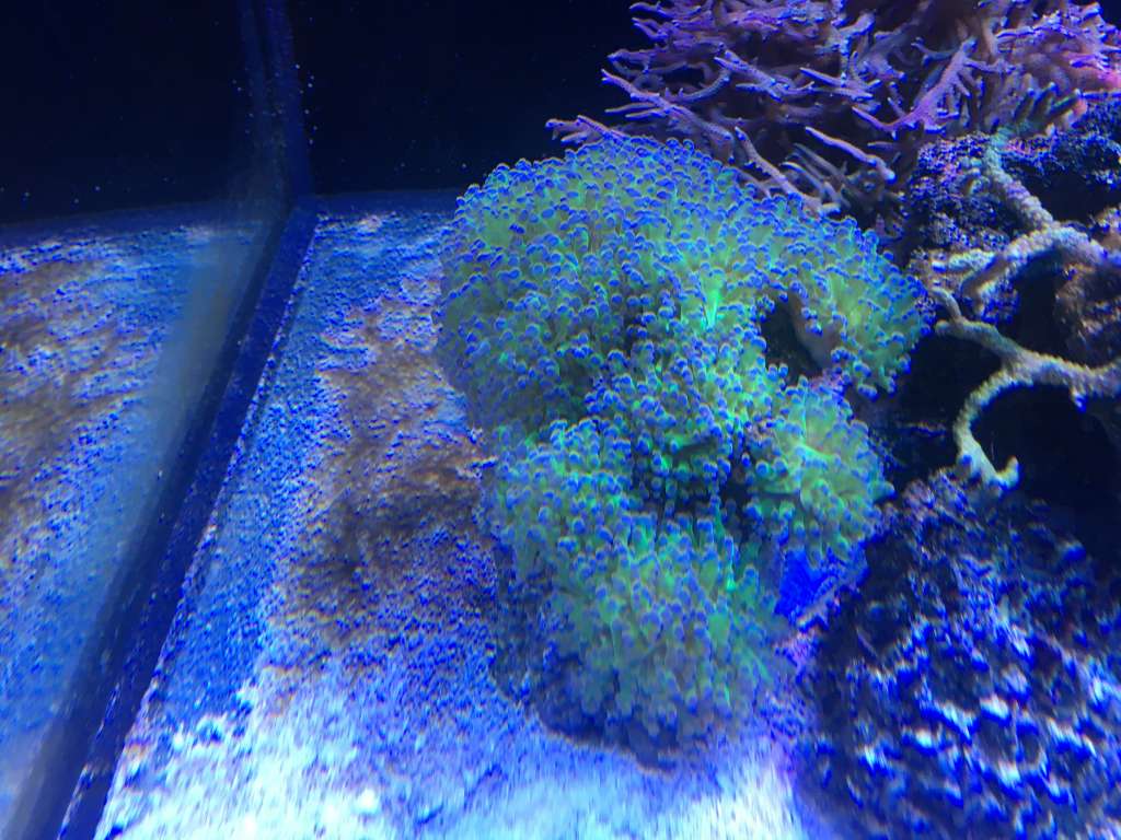 Det der egentlig har givet mig mest bøvl er farven på mine grønne koraller, som jeg læser burde være noget af det nemmeste. Bøvlet var at de blev for lyse i farven som om der enten ikke var nok nærig i vand eller de blev brændt af lyset. Da jeg så fik næringen i vandet op(ved flere fisk samt en øget foder mængde) kom farven igen.