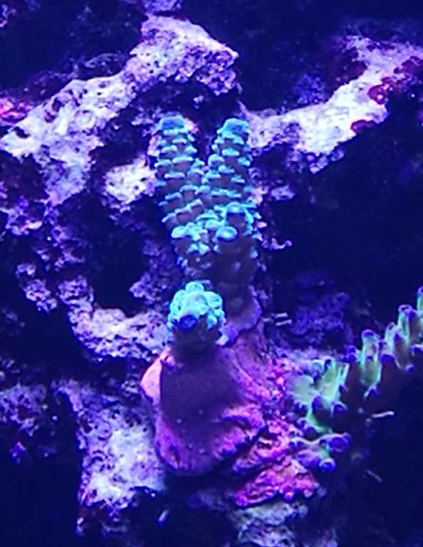 Den ene er gået mod det blå, super flot men det er svært at vange da den er bagerst i akvariet, denne står på 20 cm lige under en Sicce lampe.