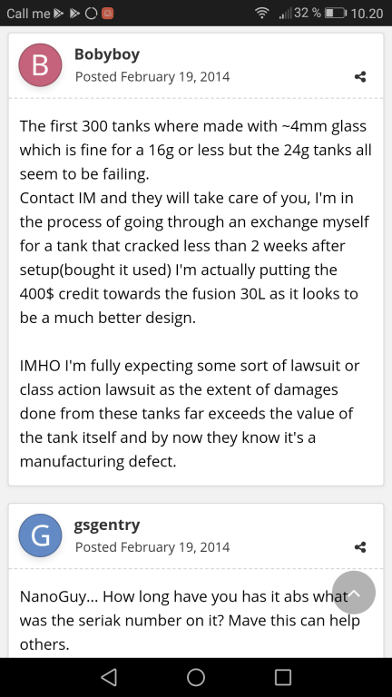 Brug evt. også lige lidt tid på at google akvariet og nogle variationer af "cracked screen". Der har været nogle problemer. Jeg ved ikke helt hvor mange og præcist, men det gjorde i hvert fald at jeg fravalgte det, da noget af det sidste jeg vil er at være det mindste usikker når jeg roder i akvariet eller bare ligger og sover.