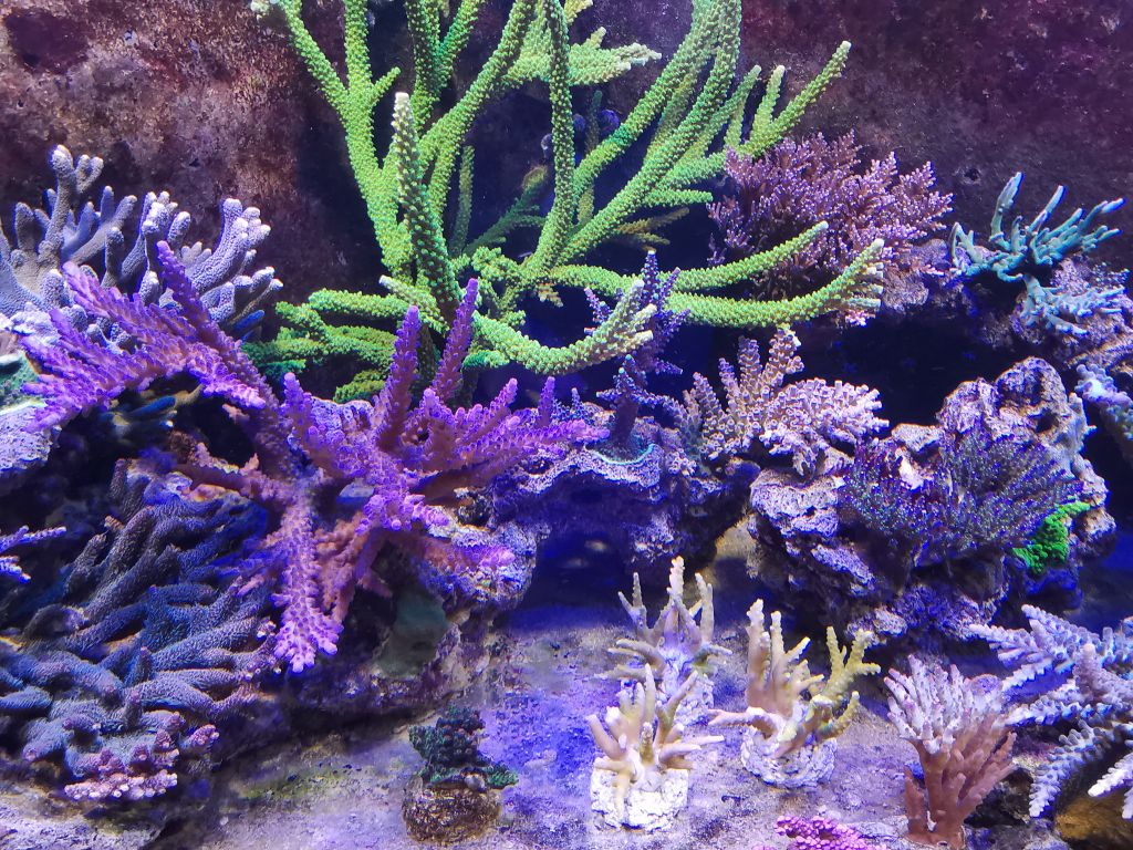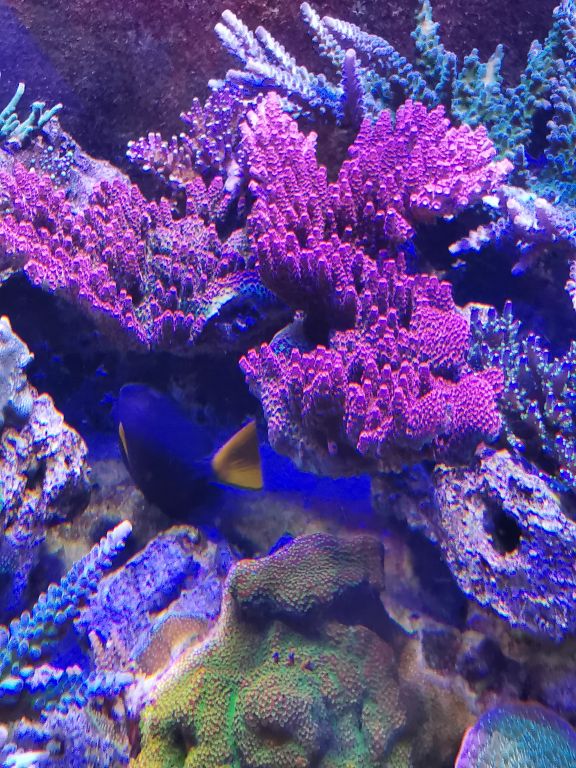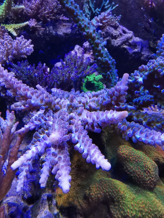 Yep! 2x250w Giesemann Megachrome crystal clear 4x54 t5 3 blue+ 1 true artinic OG 2xOR 120 Orphek skyblue ledbars (de gir lidt “blue pop”) som de unge mennesker her på forum jo elsker ;-)
