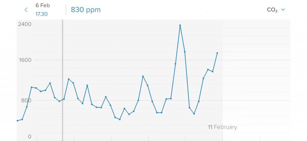 Men det er selvfølgelig knap så godt, at CO2 i hjemmet må være noget forhøjet. Jeg må have fat på en CO2 måler https://shop.orsted.dk/produkt/netatmo- ... smtB0Sk8pI og finde ud af om der skal investeres i mere generelt ventilation i boligen. (GENVEKS baseret).