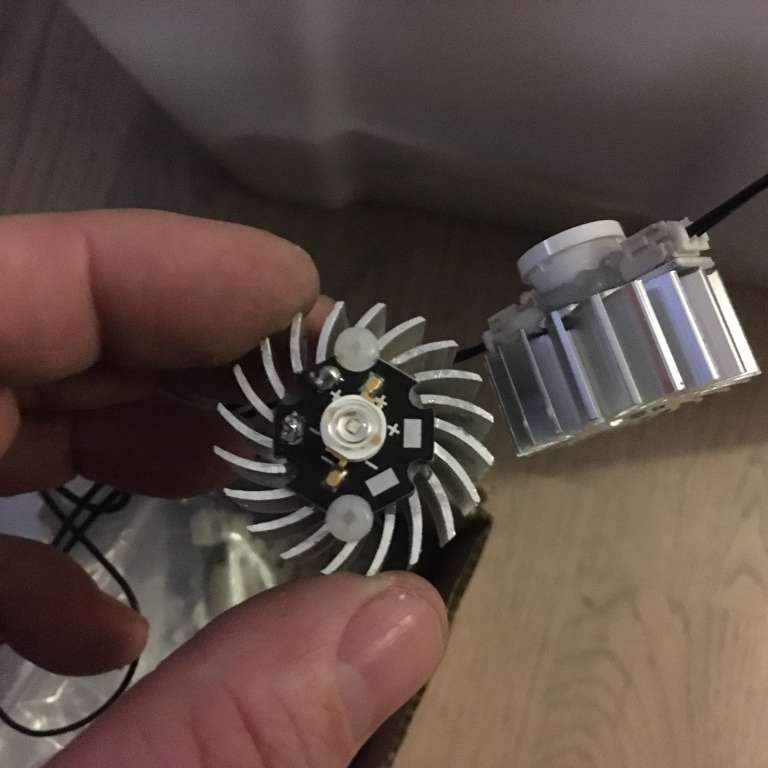 Det er ikke Dioden og Hex'en jeg mener er for tynd, men derimod godset i retskinnen, skinnen er så tynd at temperaturen fra dioden ikke kan fordeles ordentligt ud i alu'en selv med meget høj flow i skinnen kan varmen ikke komme væk, således at temperature i selve dioden (silicium) bliver for høj, derfor kommer du i en situation hvor du skal skifte dioder løbende, da de overskrider deres max temp.Carsten skrev: Forstår ikke din indvending med den plade som dioderne er monteret på. Du mener at producenterne bevist monterer dem på noget aluminium der er for tyndt? Jo det fungerer. Jeg lavede nogle "lamper" med 3x10w dioder på. Største fejl var en strømforsyning der stod af undervejs.