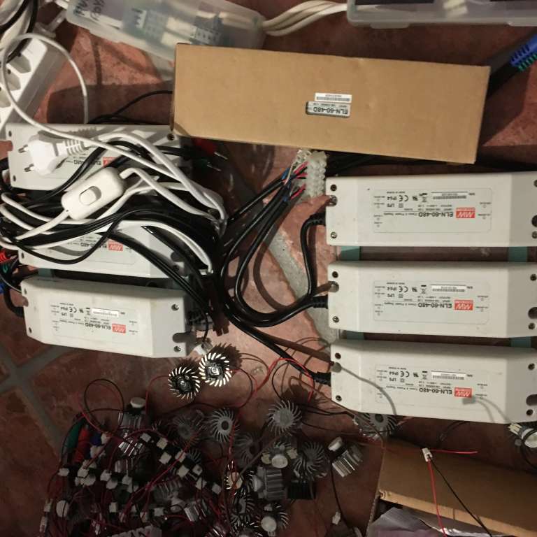 cree dioder meanwell drivere - enkelt styk allu heatzink ( som virker ) faktisk en hel kasse fuld på loftet - et gæt vil være at der samlet er for 6-8000kr.