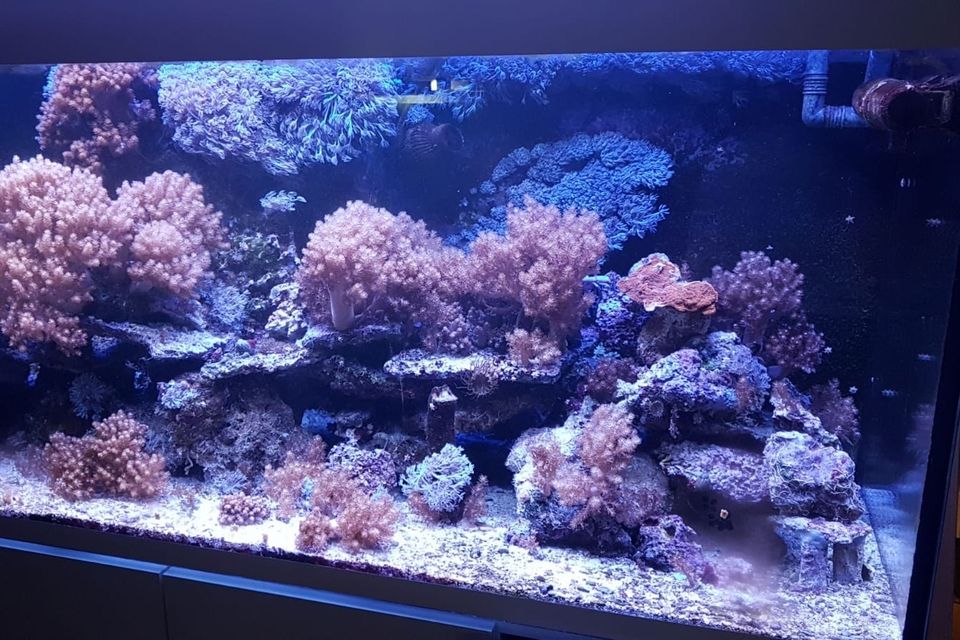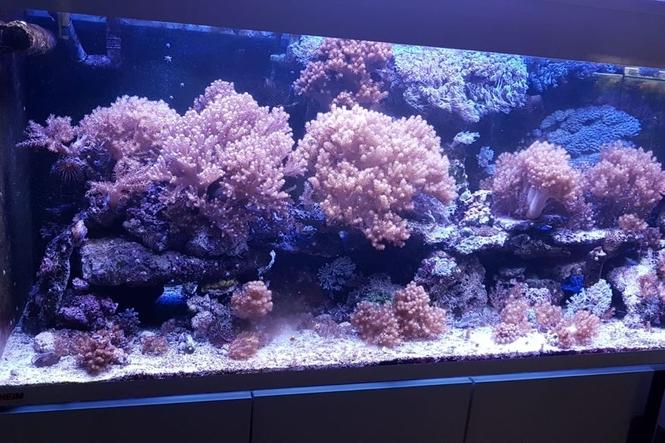 720 liter og 150 liters sump, Philips CoralCare gen 1 lamper, Nyos Quantum 220 skummer, MP40QD mobius og Jebao DCP10000 retur. Samt GHL profilux.
