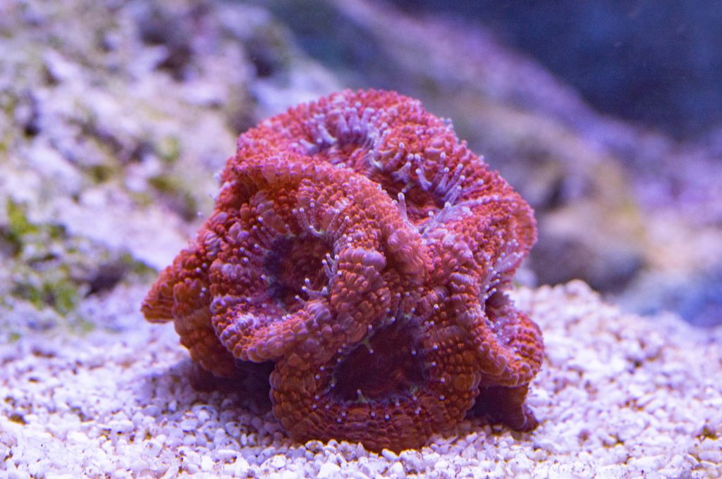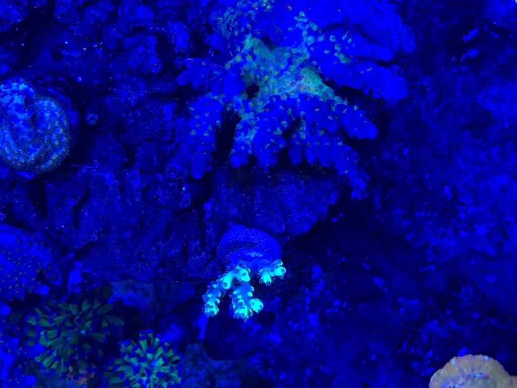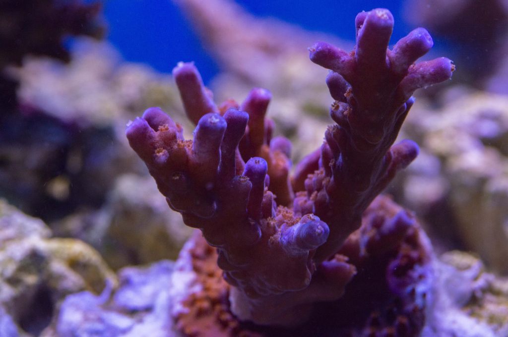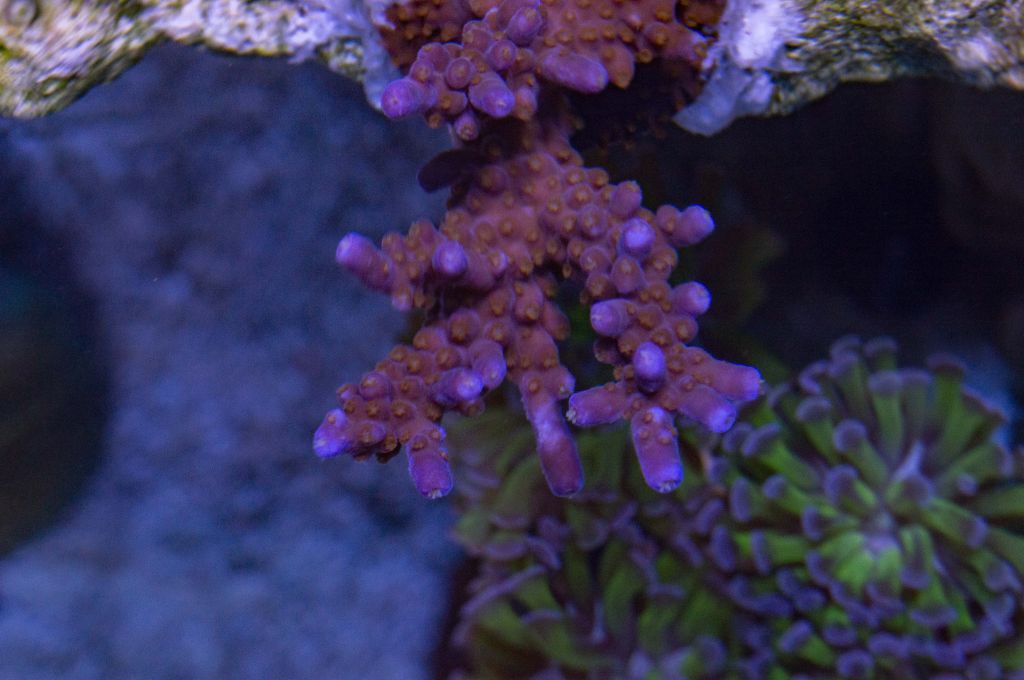Jeg købte en Acropora Hyperberry for noget tid siden, fragget havde ikke så meget farve da jeg købte det, jeg købte det mens jeg havde det gamle akvarie på 180 liter, det blev sat et sted hvor det fik godt med lys men mellem vand bevægelse, men ændrede ikke synderligt meget farve. Efter det er kommet over i det nye akvarie, får det stadig godt med lys, men får også godt med vandbevægelse, og det har virkelig gjort noget ved farven på fragget