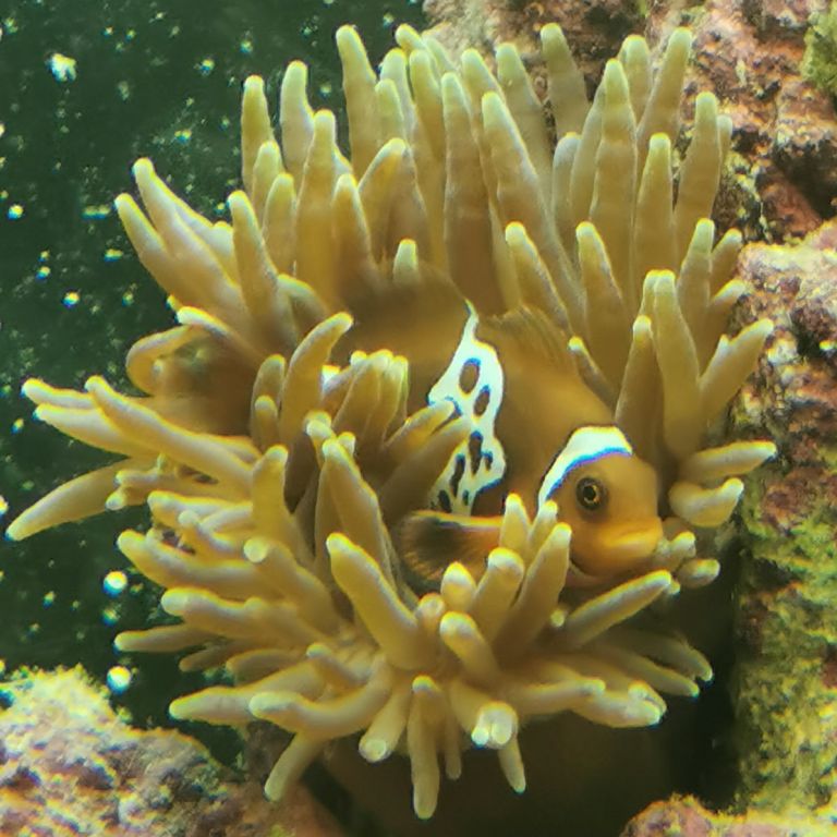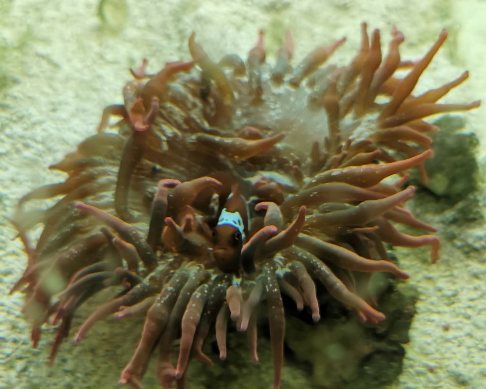 Nu har den ene fundet kærligheden i en anemone, og positivt er at de ikke slås, men den anden holder en sund afstand på mindst 20 cm. så perfekt er det ikke. De kommer sammen over i deres system i weekenden.