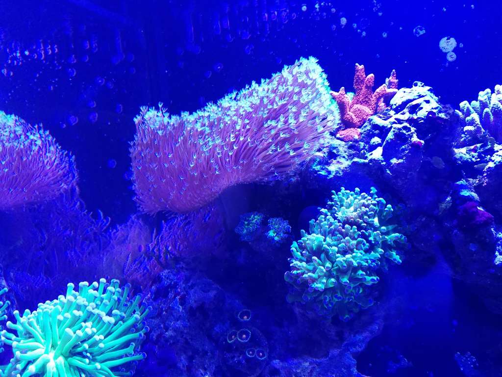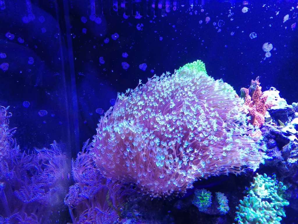 Jeg tror jeg har et forvirrende saltvandsøjeblik. Enten er den koral jeg har ikke hvad jeg troede den var (weeping willow), ellers er der godt nok sket meget siden 2014 i udbudet. Jeg synes jeg har set utallige nede hos Carsten i Decocean, og den jeg selv har (hvis den er den rigtige) fik jeg af en saltvandsbuddy, som havd fragget sin og endte mig med at give et stykke. Den har vokset sig ganske pæn i forhold til displaytanken kun er 79 liter.