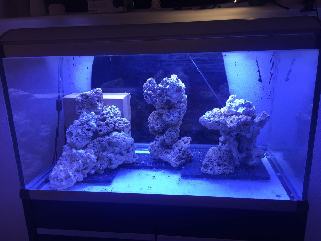 Du har den fordel at stenene er døde, og der ikke er vand i akvariet. Derfor kan du placere stenene, så de ikke kan vælte. Det er ikke altid en mulighed, hvis der er vand i og stenene er levende. Jeg har aldrig brugt at lime det sammen.
