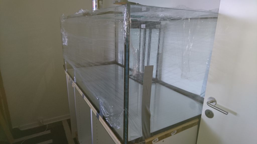 Så kom vores nye akvarie på plads, nu skal der kun flyttes vand, sten og levende