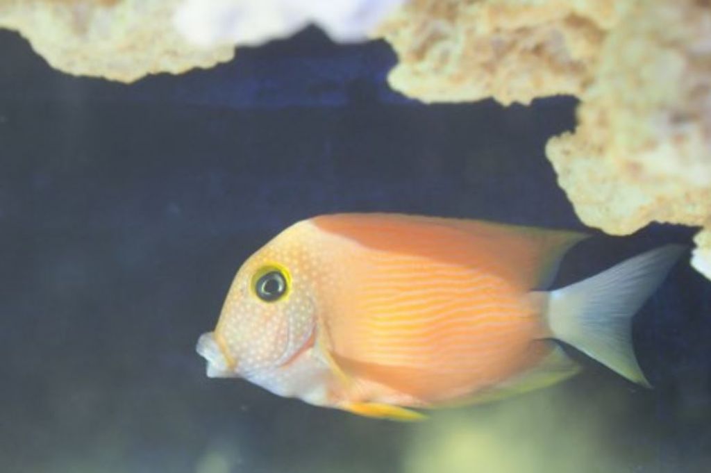 Akvariet er godt 4 uger … Ammonium og Nitrit er nul. Kirurgen har selvskab af en "Hugo" og to Dannebrogsrejer. Kirurgen er meget forsigtig og gemmer sig meget.