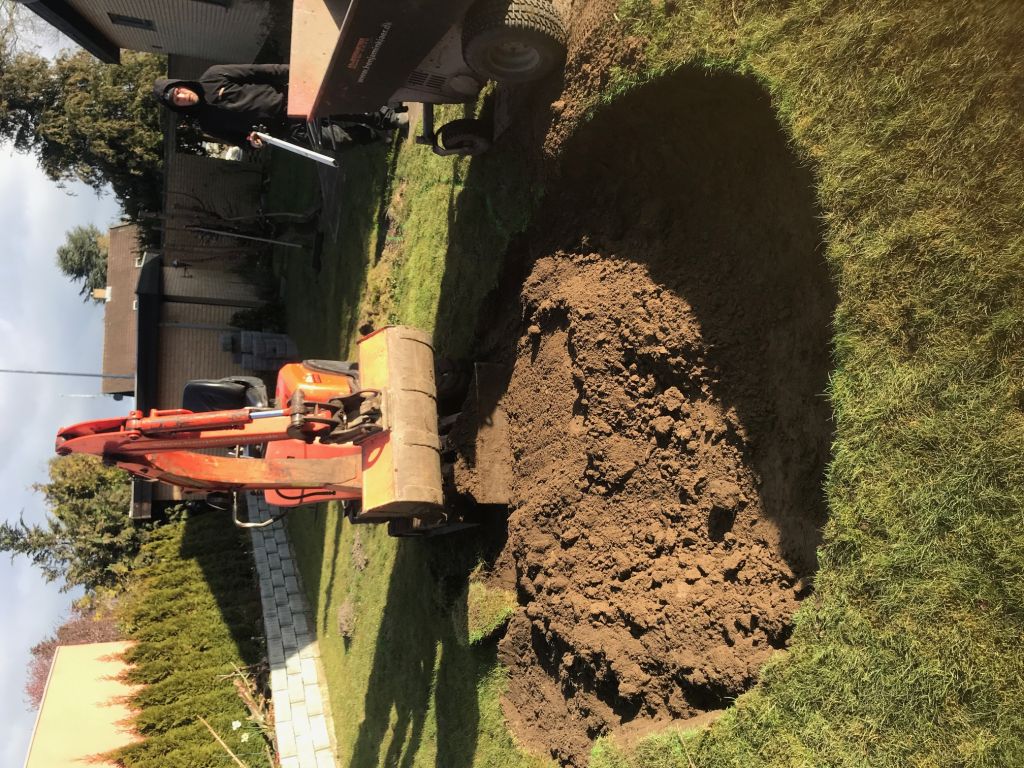 Det er ikke meget der sker her, men har dog mere eller mindre fået overstået det værste i hele processen nemlig selve udgravningen :clap: :clap: Det sidste der skulle udgraves var randen hvor rør som forbinder bunddræn til pumpebrønd skal gå, yderligere skal der også gå rør til luft og rør retur fra filter til havedam.