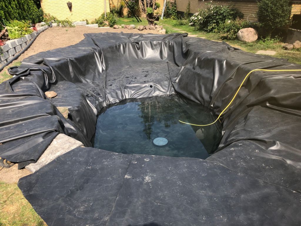 Jeg har umiddelbart mål frem til at være omkring 20.000 liter, men det præcise må du vente med til hvad vandmåleren siger når hullet fyldes op med vand... Filteret kostede omkring hvad jeg fik hjem fra den nedlagte saltvandsakvarie :wink: