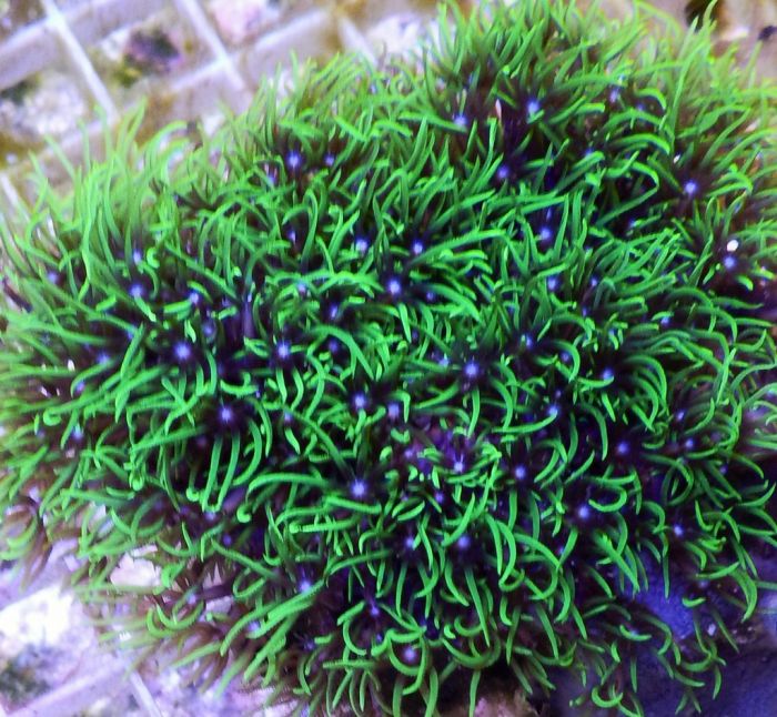 Det er en man skal lede lidt efter og jeg faldt over den ved en tilfældighed. Jeg var hos en forhandler for at se på noget andet. Pludselig spottede jeg den i et af karrene. Den var ikke i superform, der manglede polypper og væv på dele af den. Men da jeg kendte den, var jeg ret sikker på at jeg kunne få den tilbage i fin form. Den har nu vokset sig rigtigt stor og skaber liv der hvor den står. Det er en super dekorativ art og kan man få fingre i den, kan jeg varmt anbefale den. Nem og tolerant.