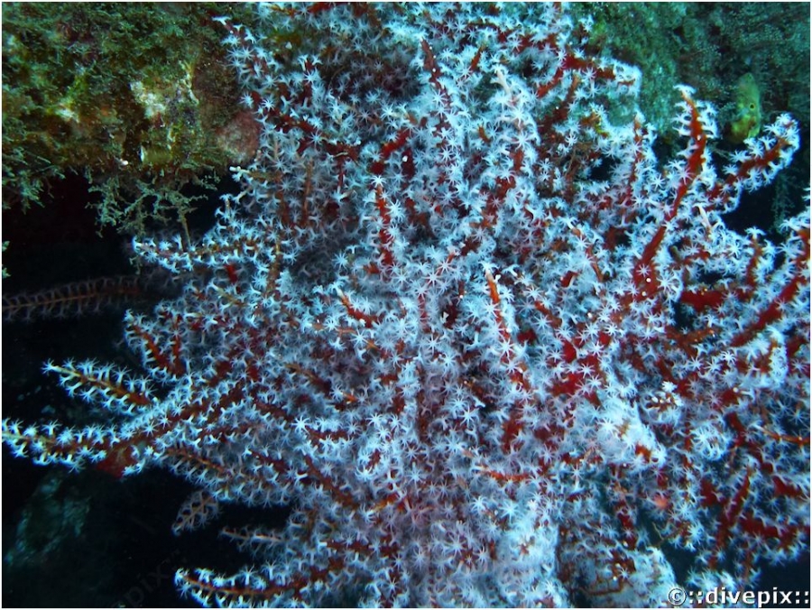 NPS Gorgonia er suverænt de smukkeste af hornkorallerne når man taler farver. De er gerne i pastelfarver, knaldrøde, blå eller gule med hvide, gule eller blå polypper.