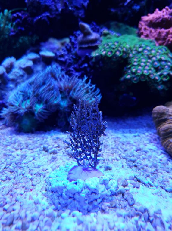 Jeg købte to af denne Gorgonia fra det tidligere Klovnfisken for mange år siden og havde dem i en del år. De blev flyttet rundt og har stået rigtig mange steder i tanken, både højt og lavt. Den er meget tolerant.