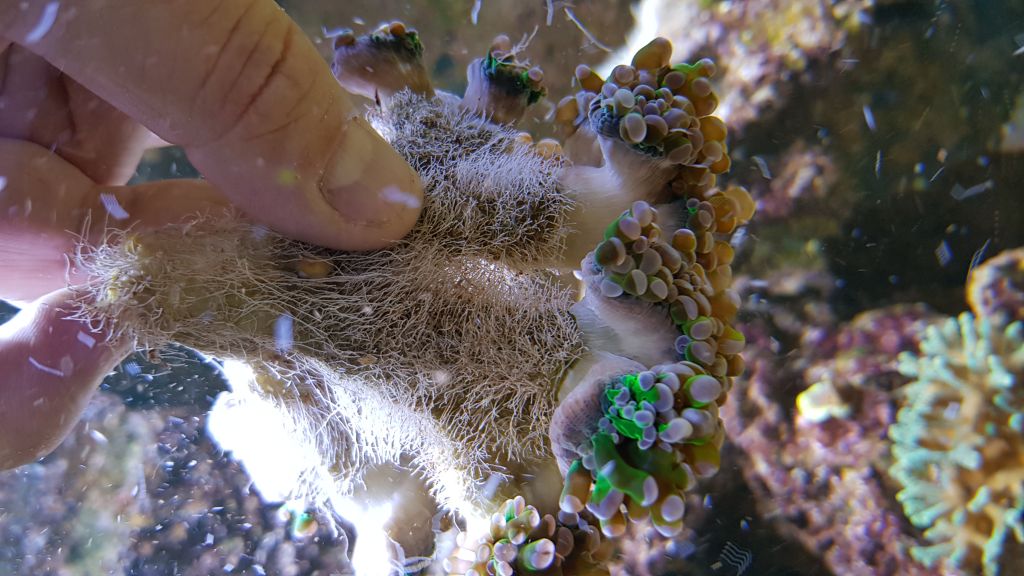 Nogen der har noget bud på hvad er der begyndt at genere min ene hammer koral?