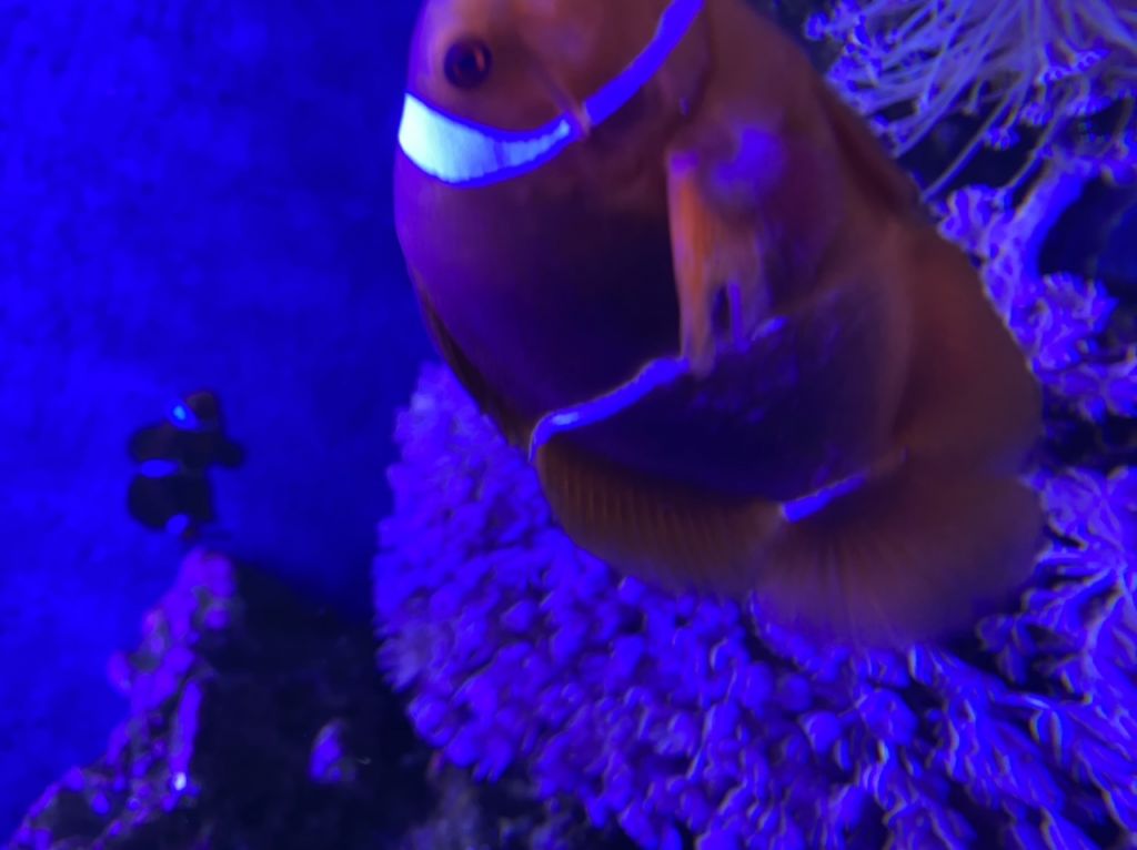 Hej min klovnfisk har nu igennem noget tid haft noget hvidt på den ene side. Ingen andre fisk er ramt.