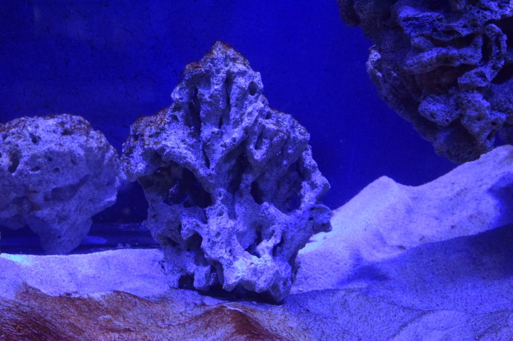 Planen pt er at jeg skal have lps på de flade sten til venstre, sps på midterstrukturen, forskellige hammerkoraller på den hængende hylde og charlice koraller de steder der er skygge. Jeg vil forsøge at få div zoas til at sidde på "Eddie" på bagvæggen og på den lodrette del ved overløbet. Så må vi se om de plander bliver lavet om???