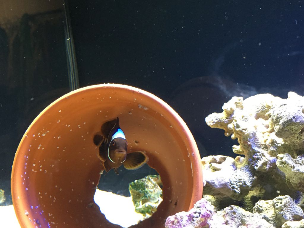 Jeg har også voliere med fugle, et stort hus at renovere og planer om køb af sejlbåd næste sommer, så uanset hvad ville jeg ikke have tid og lyst til at passe yngel lige nu. Men det er frustrerende at fiskene ikke vil enes. Klovne er pænest i par synes jeg. Og sælger jeg den gulstribede har jeg kun én fisk tilbage i akvariet. Det er der ikke meget ved, selvom jeg ikke kan komme på nogen flottere fisk