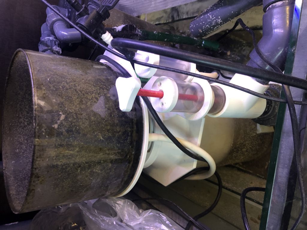 Hvad er problemet?? Det er da fint sort snask den koger af. Det kan have noget at gøre med vandstanden i sumpen. Måske lidt svært at sænke den, men så kan man prøve at hæve skummeren en smule