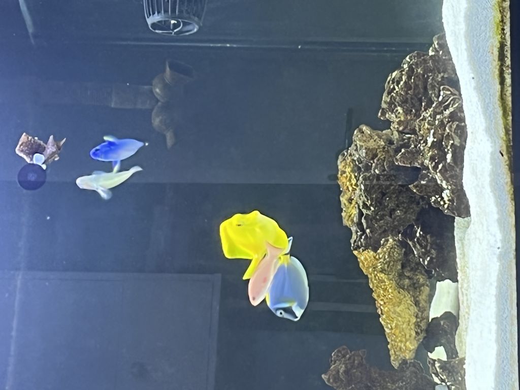 Alt ser fint ud. Jeg tilfører en sten med nogleskiver på og lidt flere fisk, der går ca 14 dage derefter begynder jeg at se hvide prikker på min palet kirurg. Der går ikke mange dage før jeg også kan se det på nogle af de andre også.