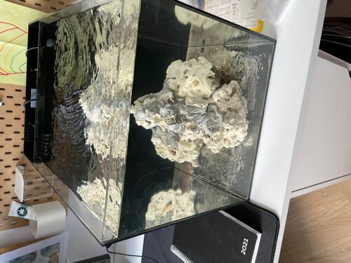Det er et Waterbox Peninsula 15, som blev startet op 8/8-21 med hele nye sten og en enkelt fra mit store akvarie til at pode.