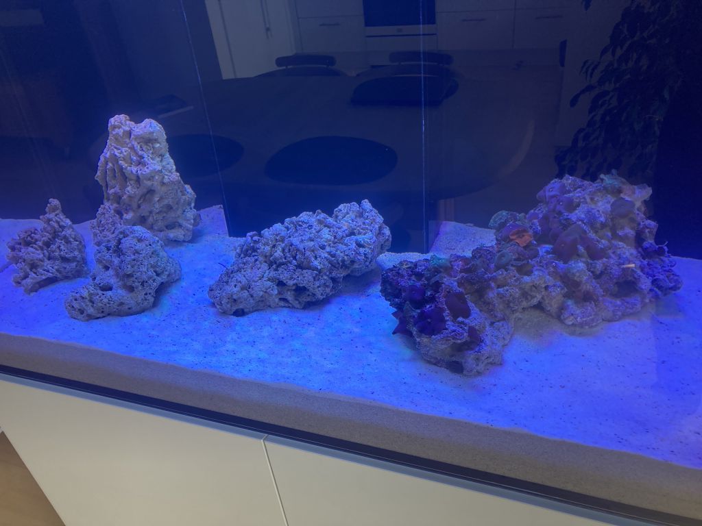 Det bliver lagune habitat med sandbund, søgræs og goniopora’er- og måske et par bløde koraler, lidt småfisk, rejer og snegle.