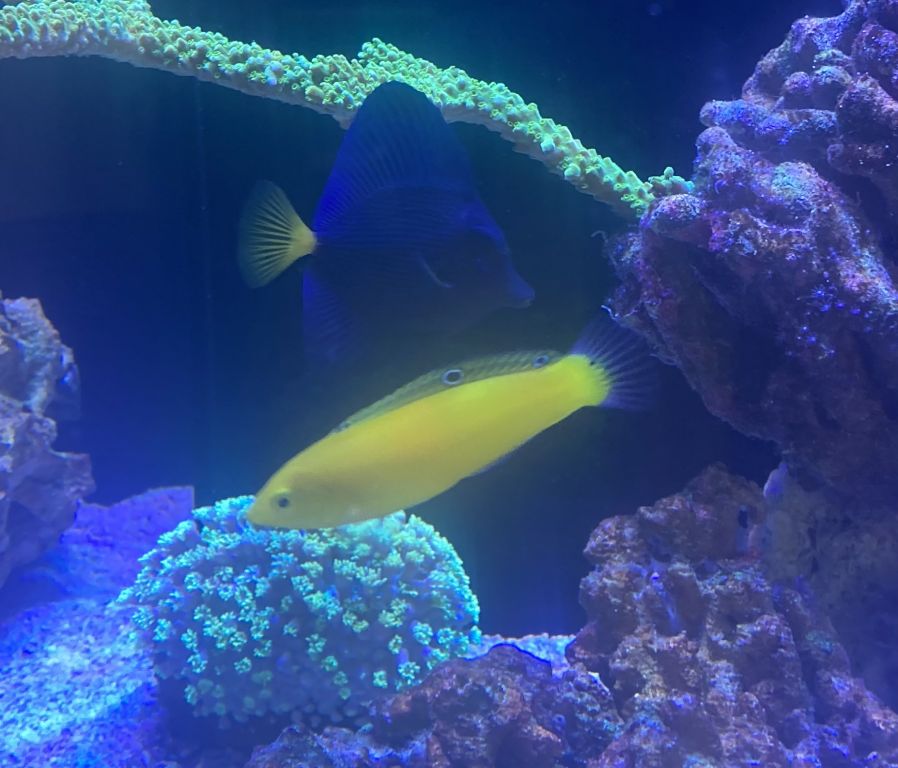 Det er med spænding at jeg undværer skummeren og det begrænser selvfølgelig hvor mange fisk jeg kan have og hvor hurtigt jeg tilfører dem, men jeg prøver at holde tungen lige i munden og her to måneder inde i indkøringen har jeg kun en lilla kirurg til at græsse alger og en gul gylte til at æde planarier, så de ikke ender med at blive et problem.