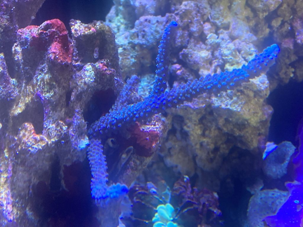 Min gamle skriggrønne millepora med de vildeste polypper, er kommet hjem igen.