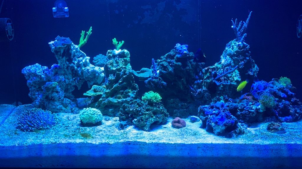 Vandet iltets godt med masser af overfladebevægelse og refugiet et fyldt med chaetomorpha alger der belyses modsat display for at holde ph stabil.