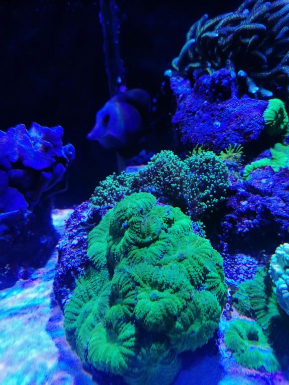 1. Grøn Rhodactis antager jeg midt i billedet. Overlever alt!