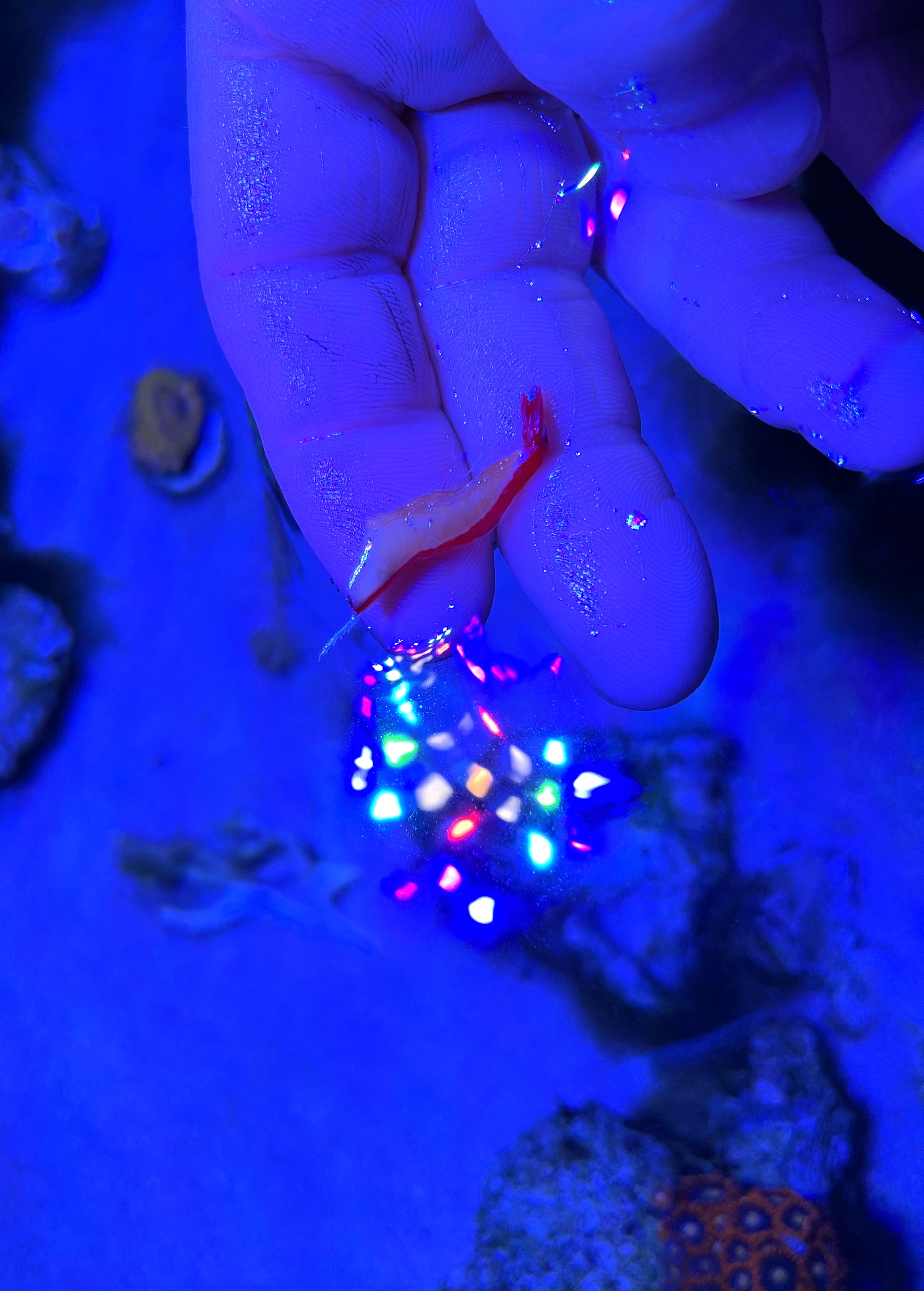 Hmmm Ned med hånden og få skubbet “svinet” væk, det var den ikke helt tilfreds med, men det gik. Så kunne jeg hive det her ud under den Har I oplevet noget lignende???? Kunne se i hjørnet af baljen der lå exoskelet fra rejen, så den har lige haft skiftet, og sikkert derfor været ekstra sårbar?