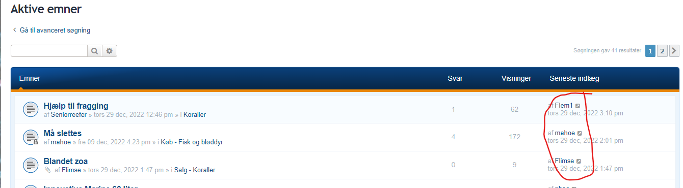 Tryk på den lille pil til højre for brugeren for det seneste indlæg og BUM, så ser man det sidste indlæg i tråden