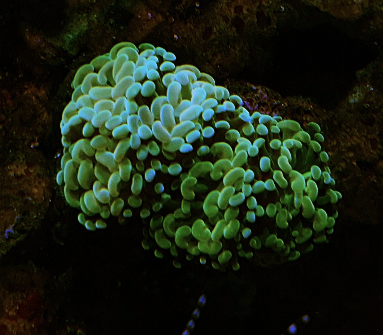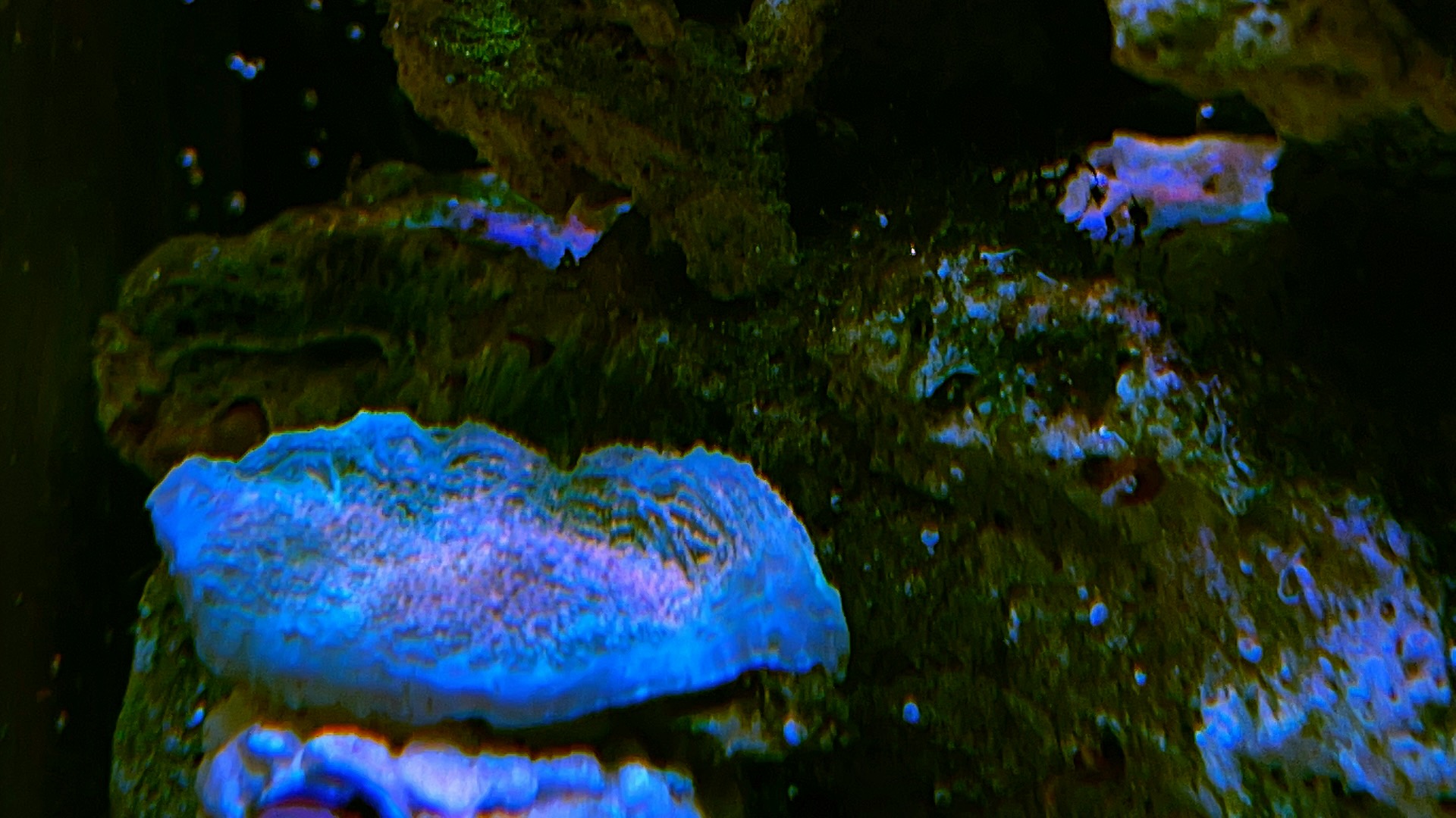Homophyllia klumpen overvejer jeg at skille lidt ad. Den nederste gule er pænt “træt” kan man se….. Jeg giver dem lige lidt tid og hvis den ikke retter sig så må jeg igang m hammer og mejsel 👍🏼