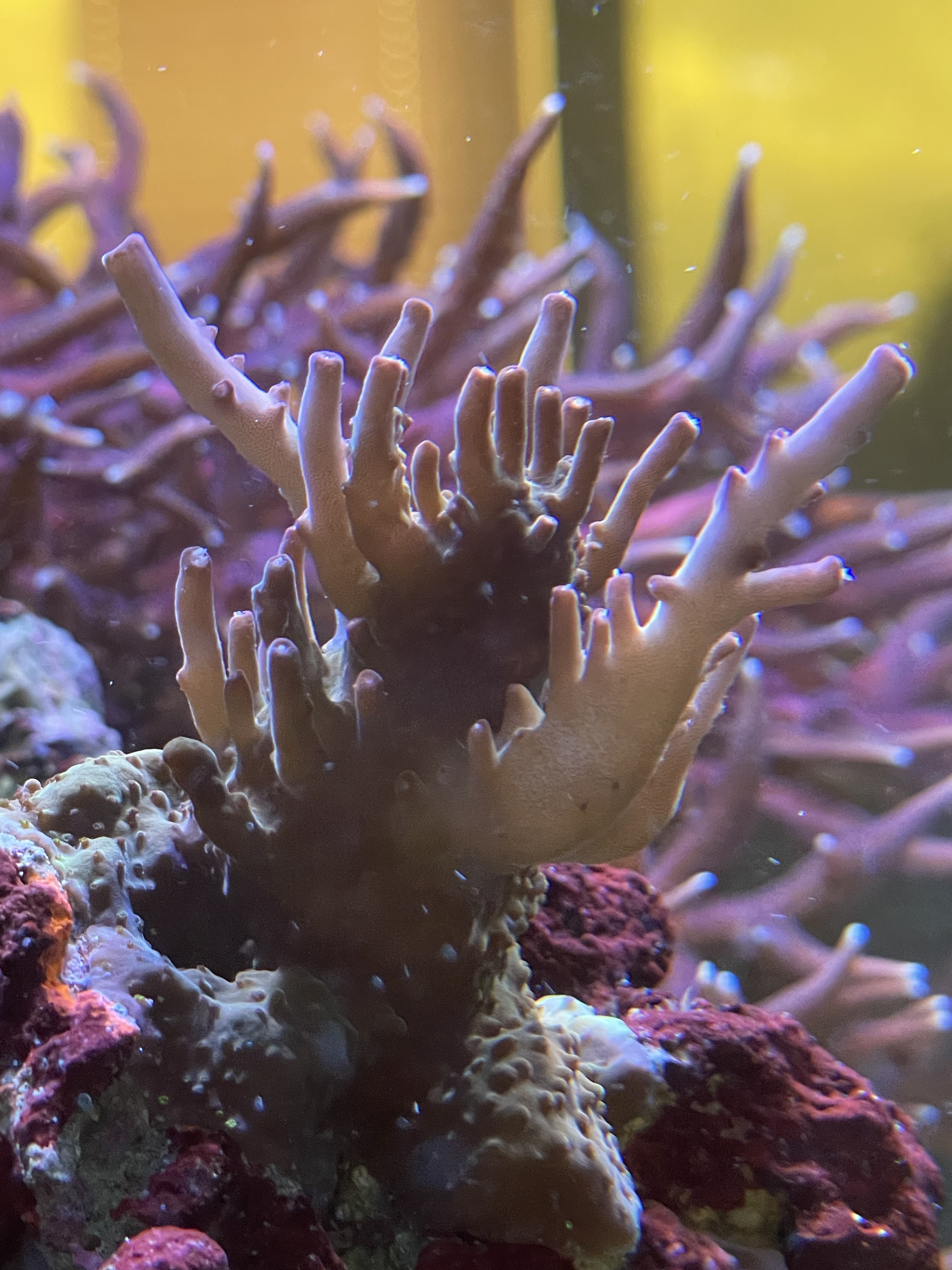 Tror mine er begyndt at elske mit vand ihverfald har diverse acro og sps vist sine fine kanter, dog kan jeg bare ikke holde farve i mine montier, og kan simpelhen ikke finde årsagen. Mag er flot, salinitet lige i skabet og fin næring. Det kunne selvfølgelig være trace elemter men hvorfor står alle andre med de fineste farver?!