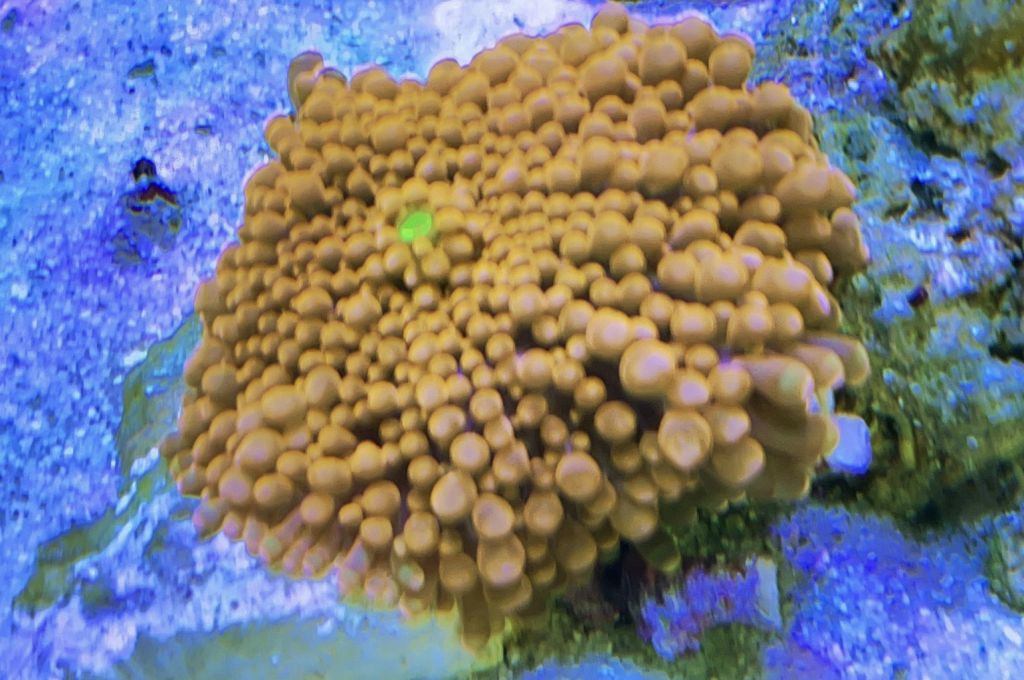 Homophyllia klumpen overvejer jeg at skille lidt ad. Den nederste gule er pænt “træt” kan man se….. Jeg giver dem lige lidt tid og hvis den ikke retter sig så må jeg igang m hammer og mejsel