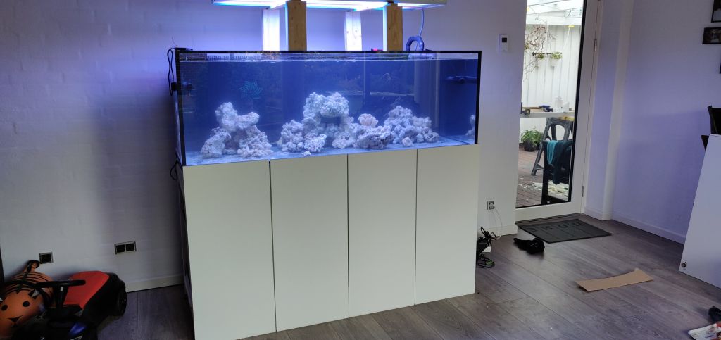 Jeg har taget et par sten fra sumpen på mit Red Sea Max 130, damp noget bundlag for at tilføje lidt liv/bakterier. Så nu skal det bare have lov til at stå og passe sig selv et stykke tid. Imens kan jeg jo bruge tiden på at få beklædt bord og lavet toppen til akvariet.