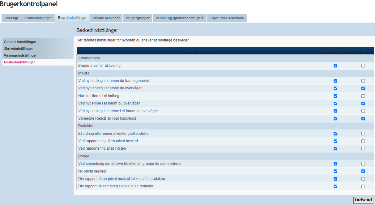 Det betyder også at det nu er muligt at sende mails til administrator via forummet