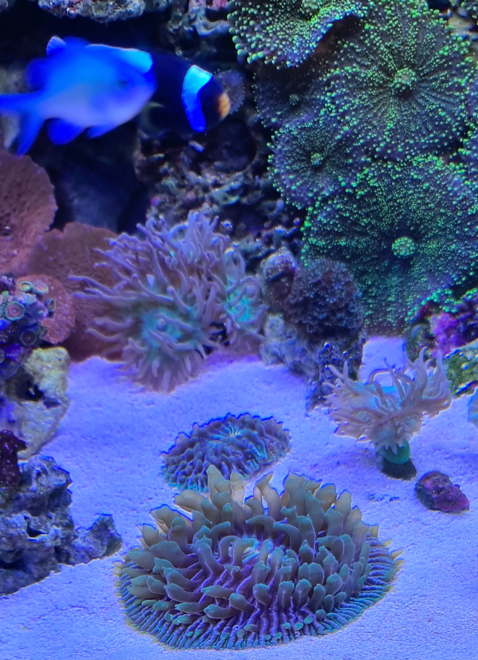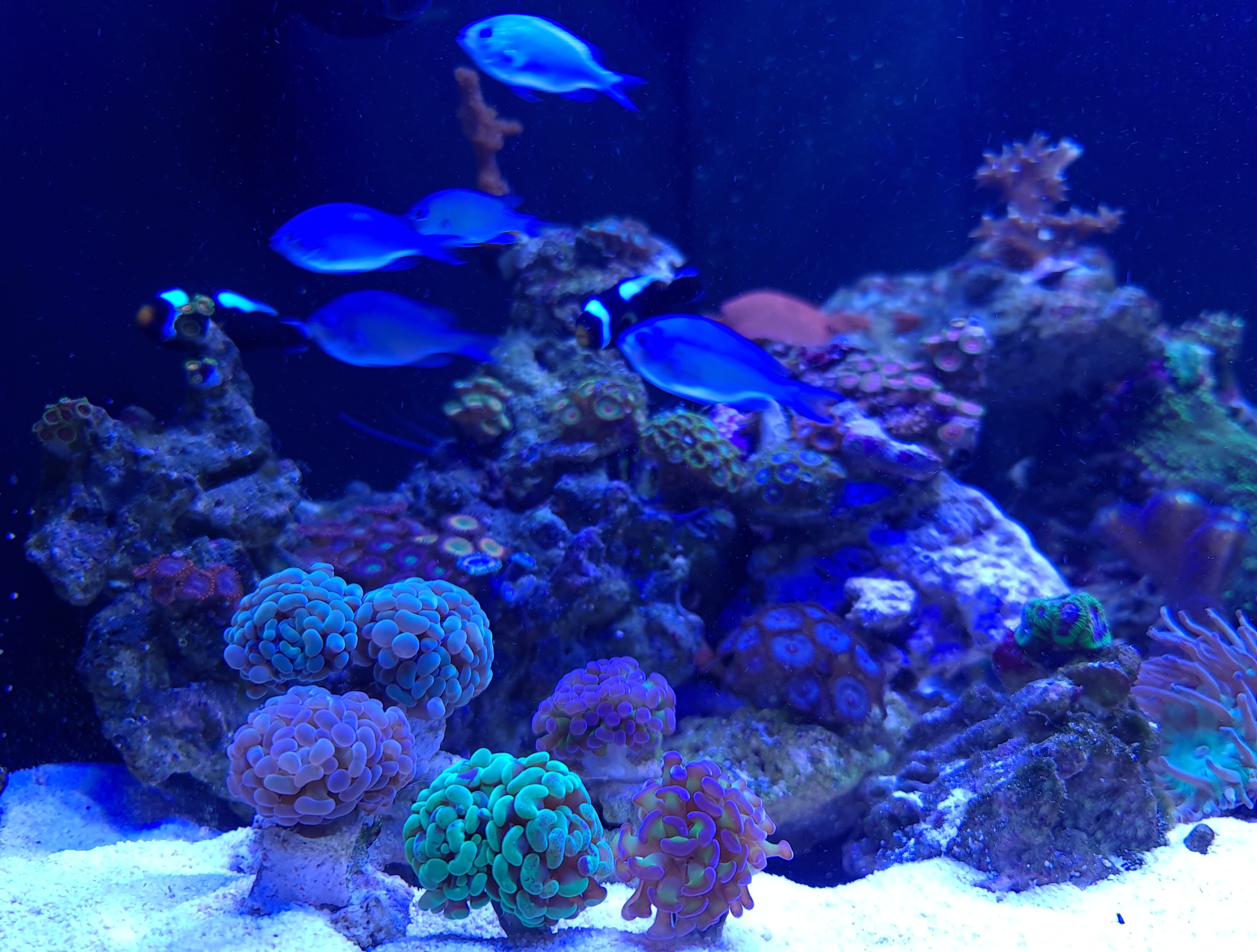 Mine forventninger til akvariet var, at der bare skulle bo et par klovne og en anemone, men da der allerede sad nogle nemme koraller på stene, så blev min nysgerrighed vækket og jeg fik set rigtig meget på YouTube og især Tidal Gardens overskuelige og flotte videoer, fik jeg lyst til at prøve med lidt forskellige typer koraller, men mest Soft og LPS.