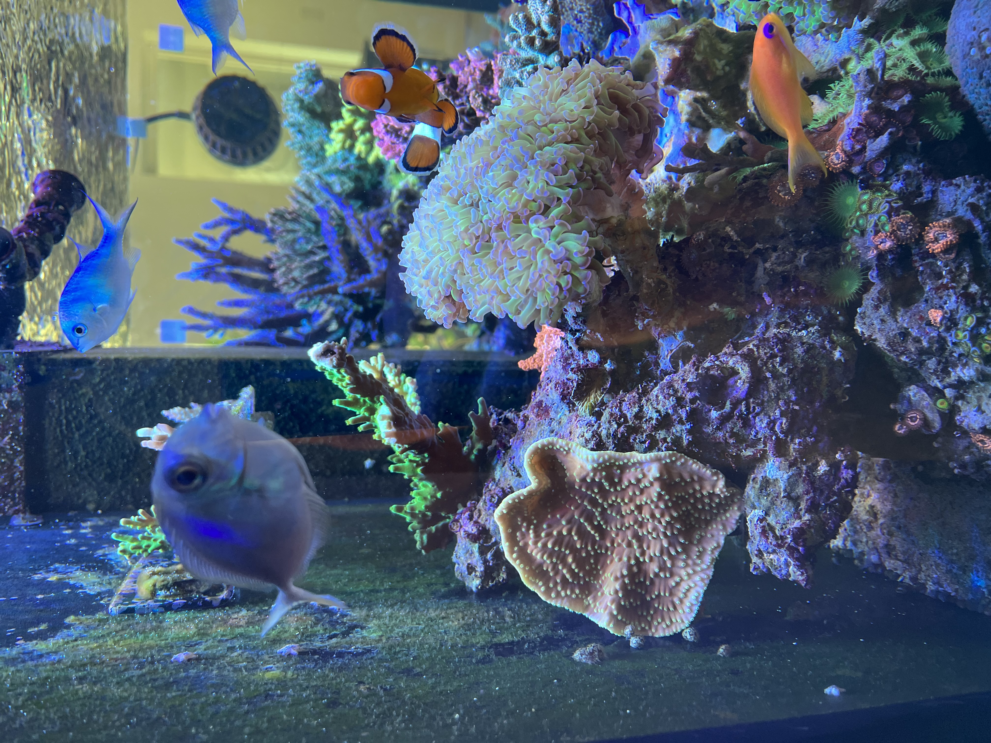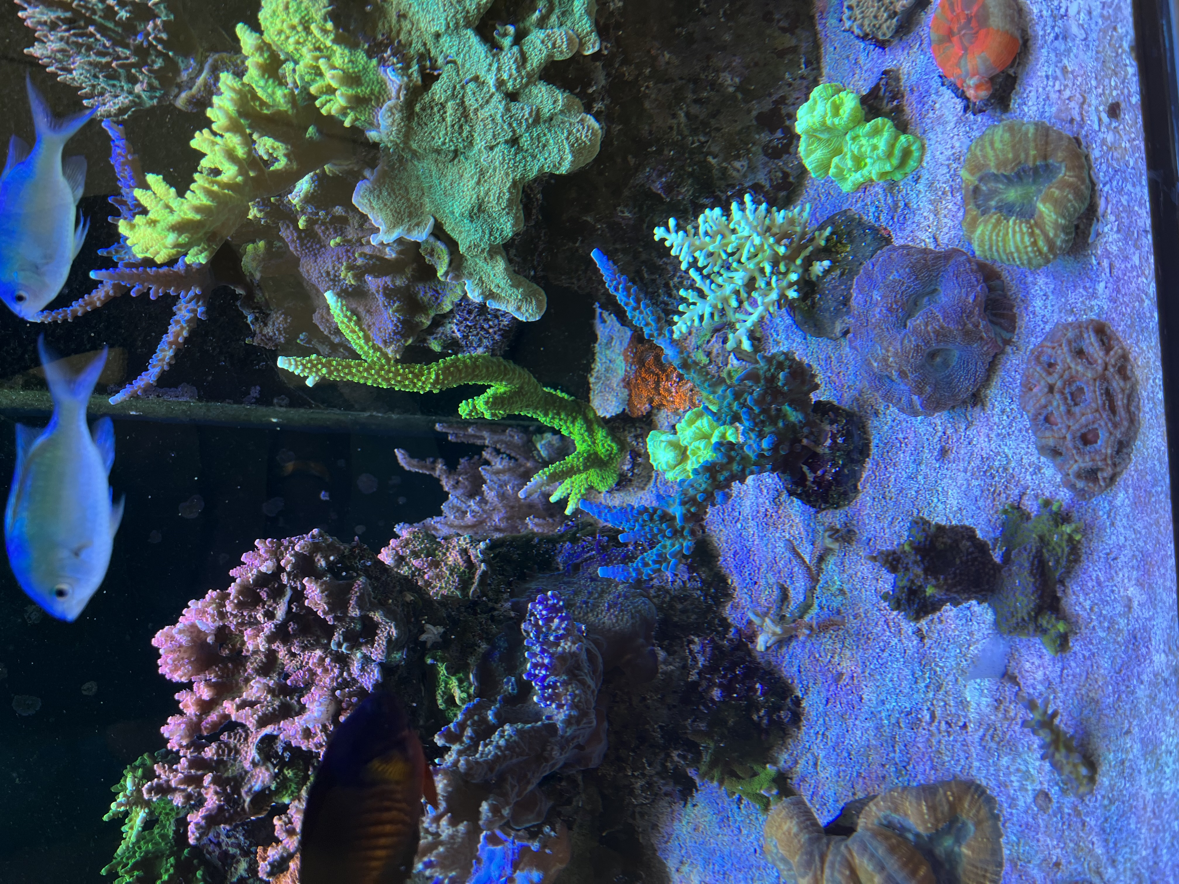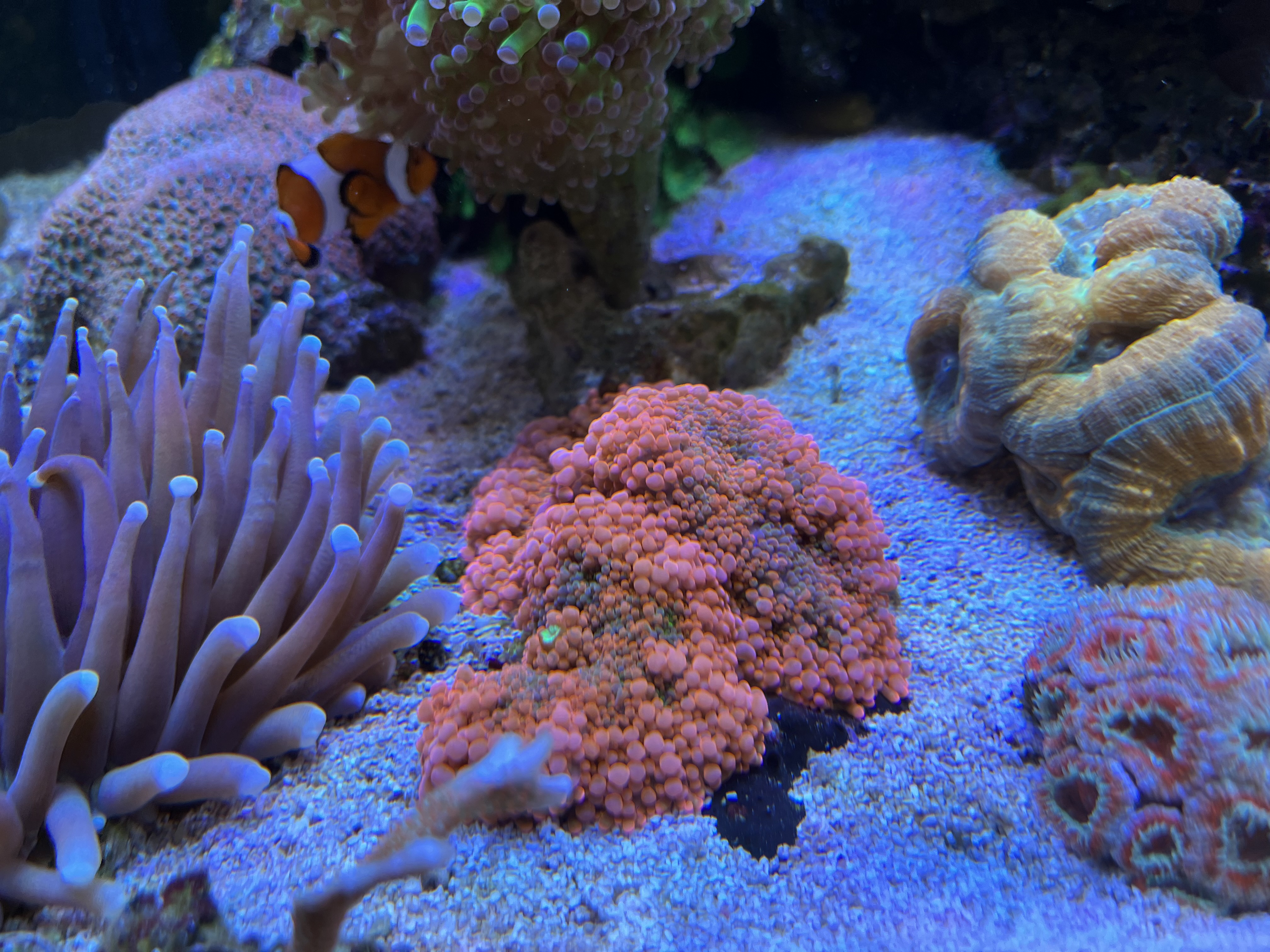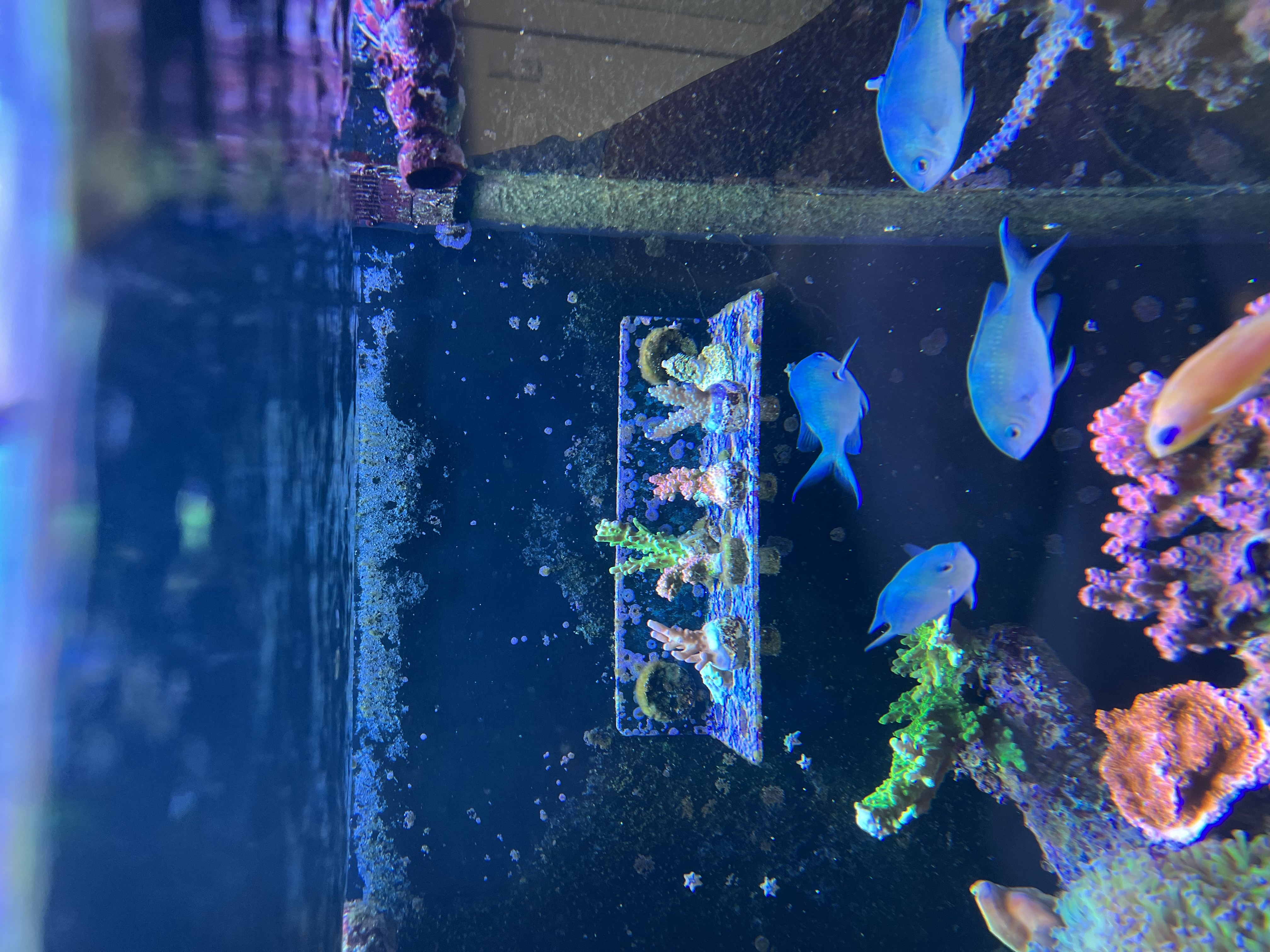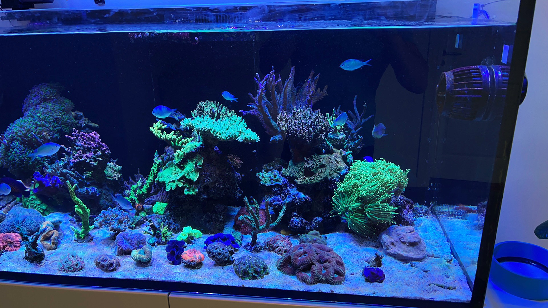Lige nu er der et rollerfilter, en red sea 900 skummer, lille uv og et lille filter med rowamedie. Og idag har jeg fået tilsat ozon.