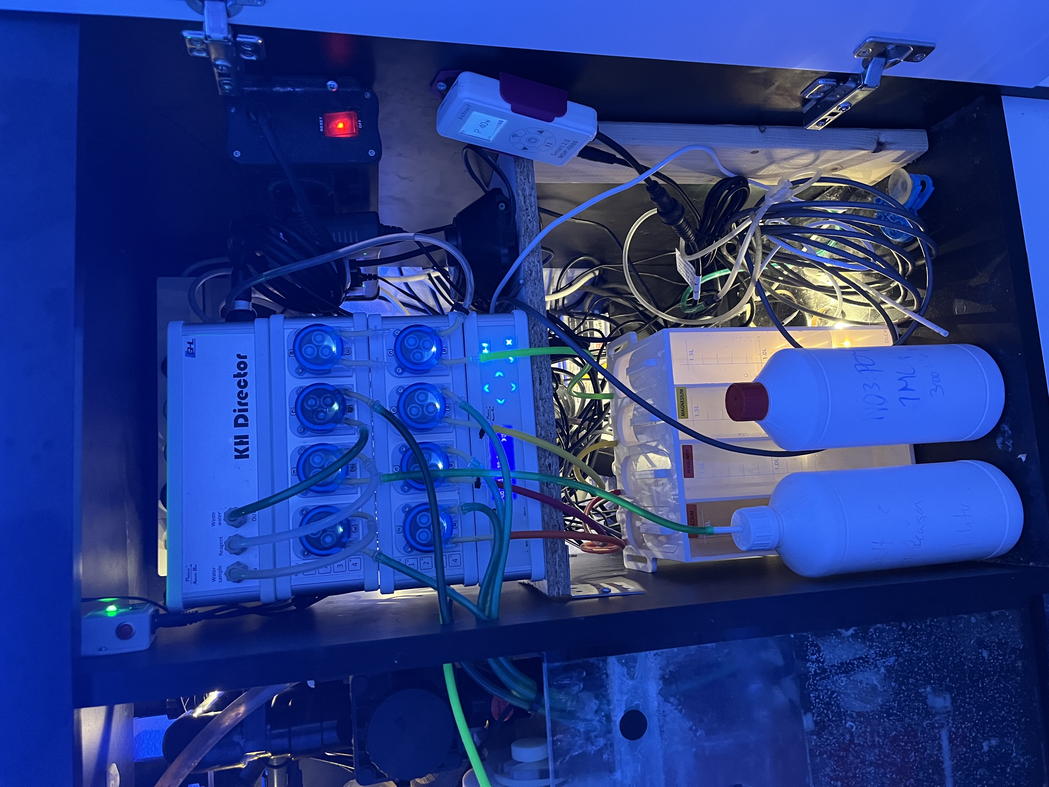 Jeg skal have køb to små skabe (noget Ikea gejl) der kan stå på hver side af akvarier, et der kan huse auto topoff vand beholderen og et hvor profiluxen med tilhørende AF Balling beholderen skal stå (og måske noget plankton bryg) så jeg kan benytte det ekstra rum under akvariet til kabelhåndtering.