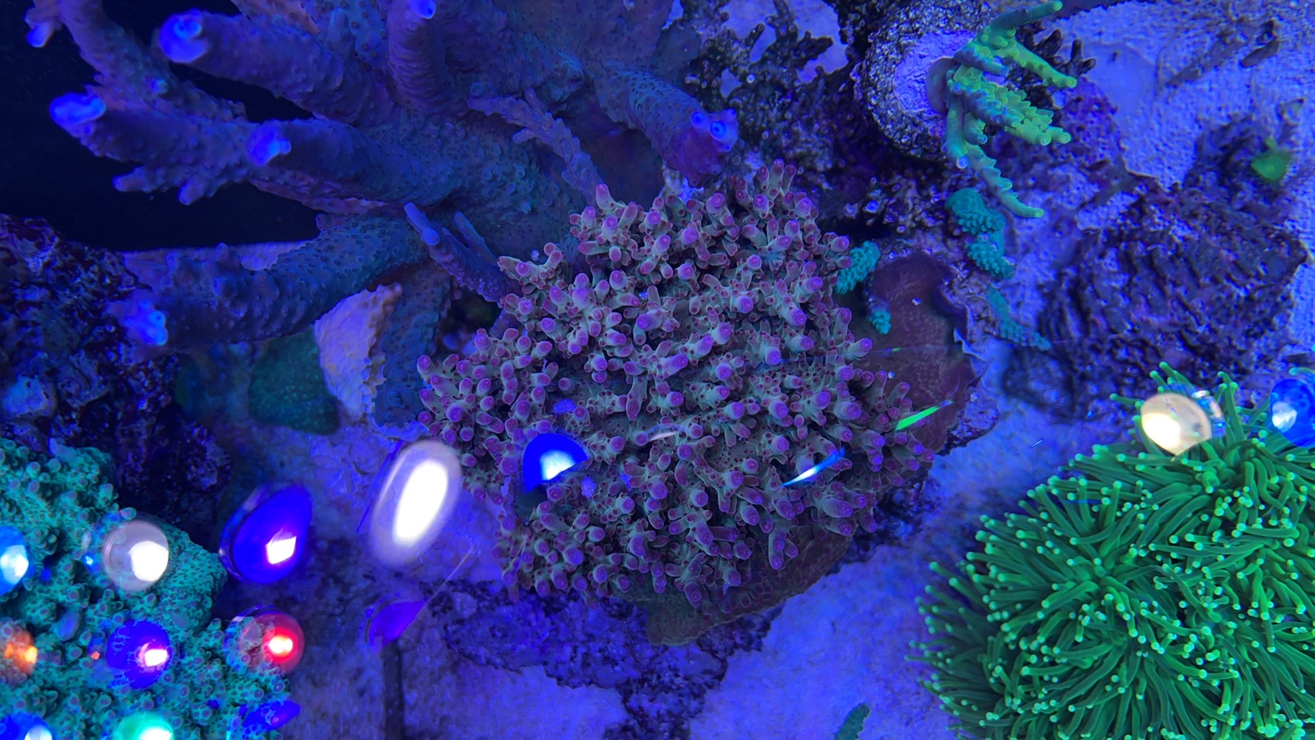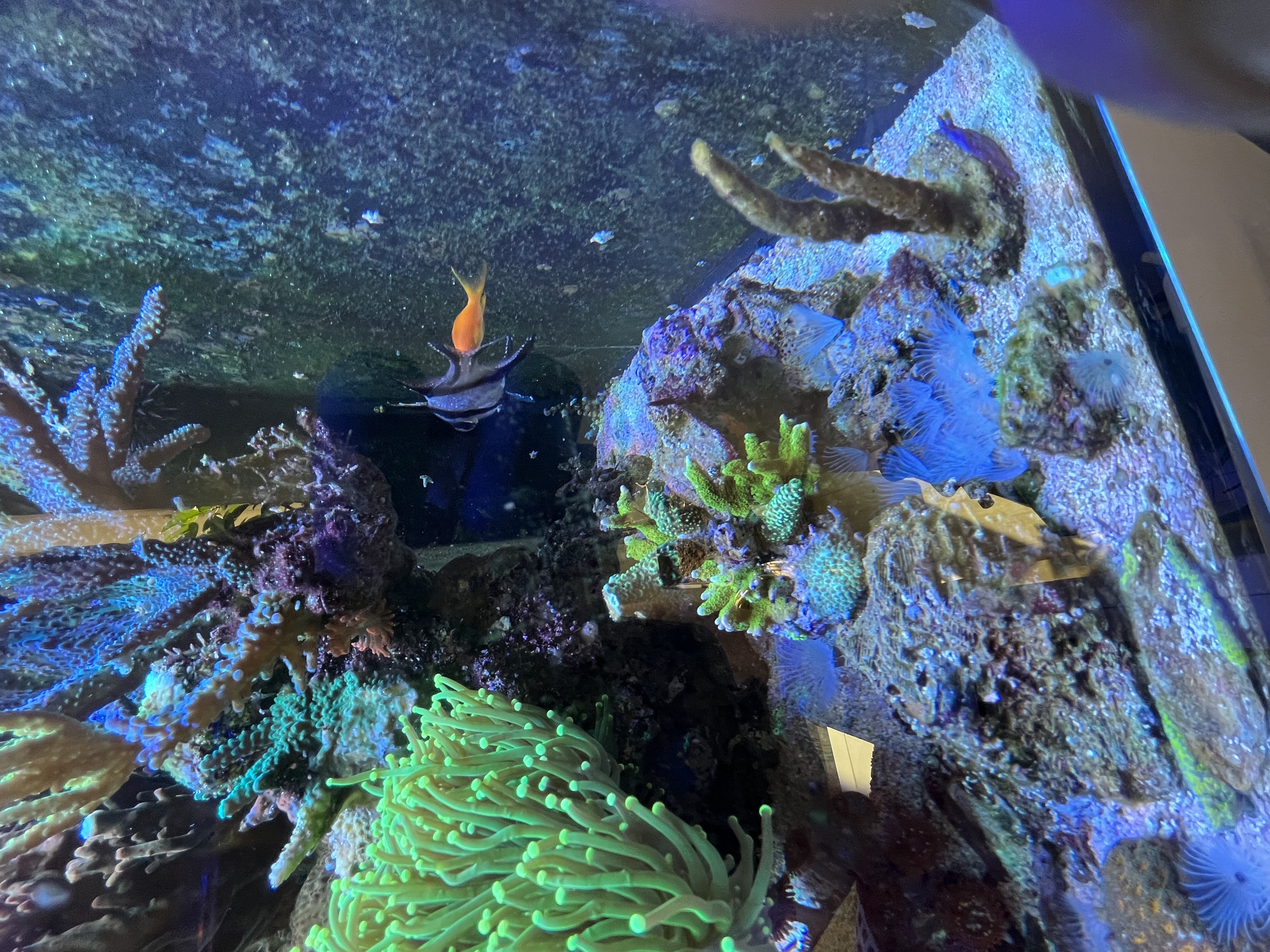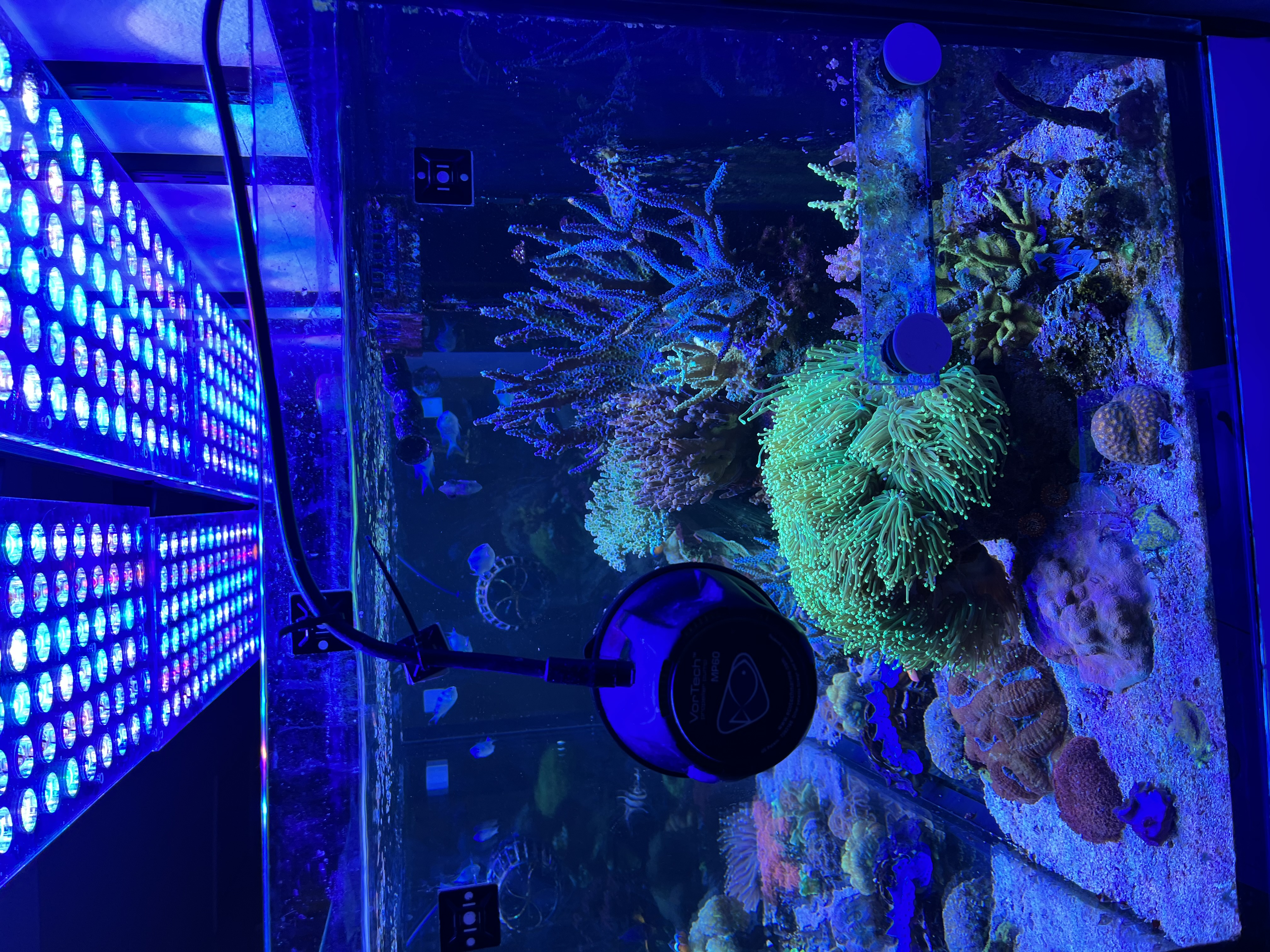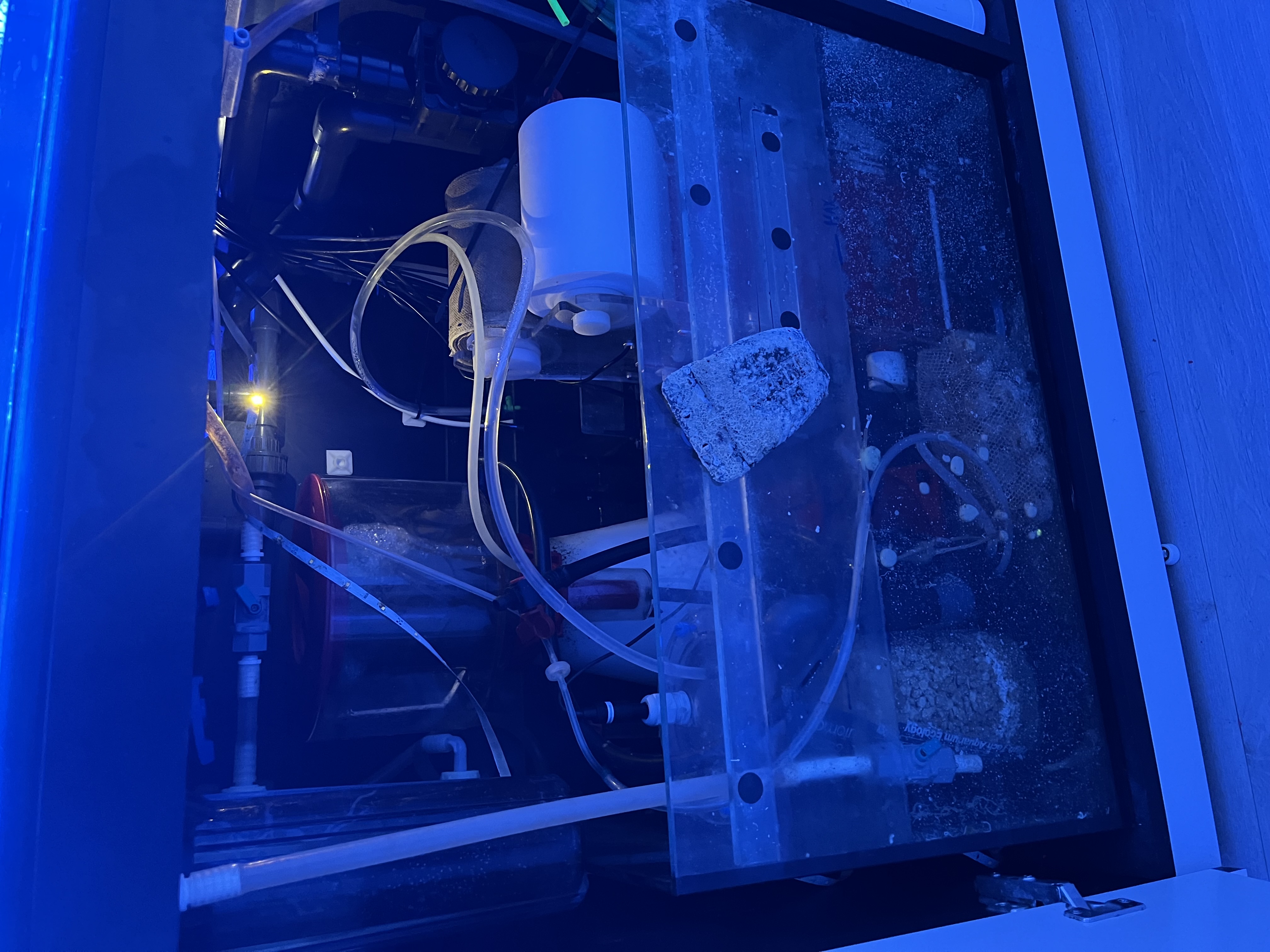 Lige nu er der et rollerfilter, en red sea 900 skummer, lille uv og et lille filter med rowamedie. Og idag har jeg fået tilsat ozon.
