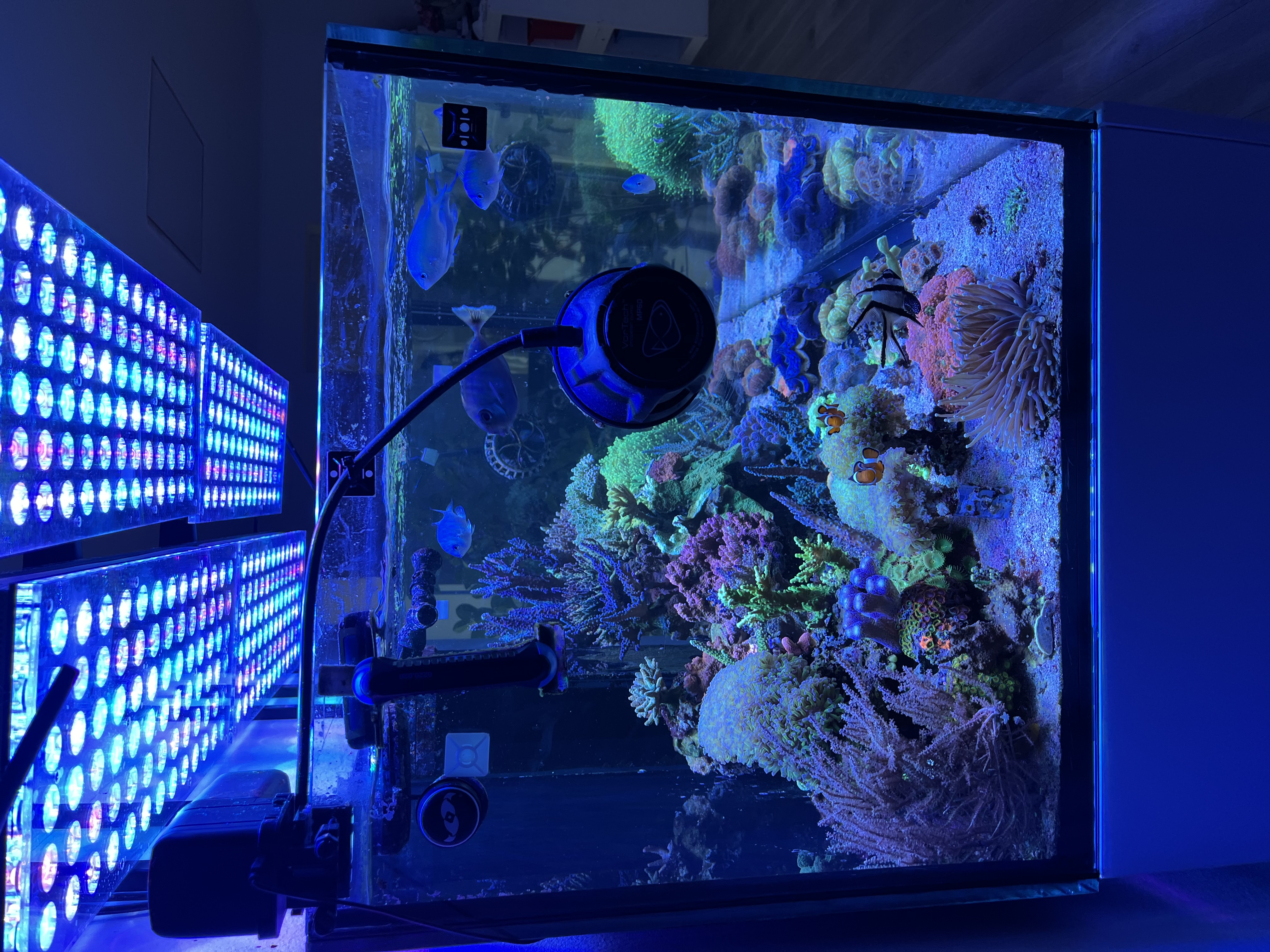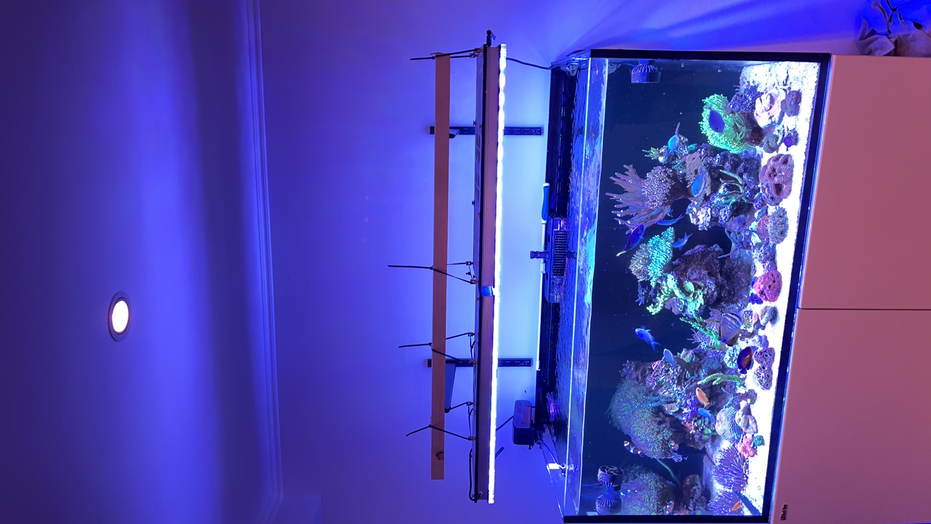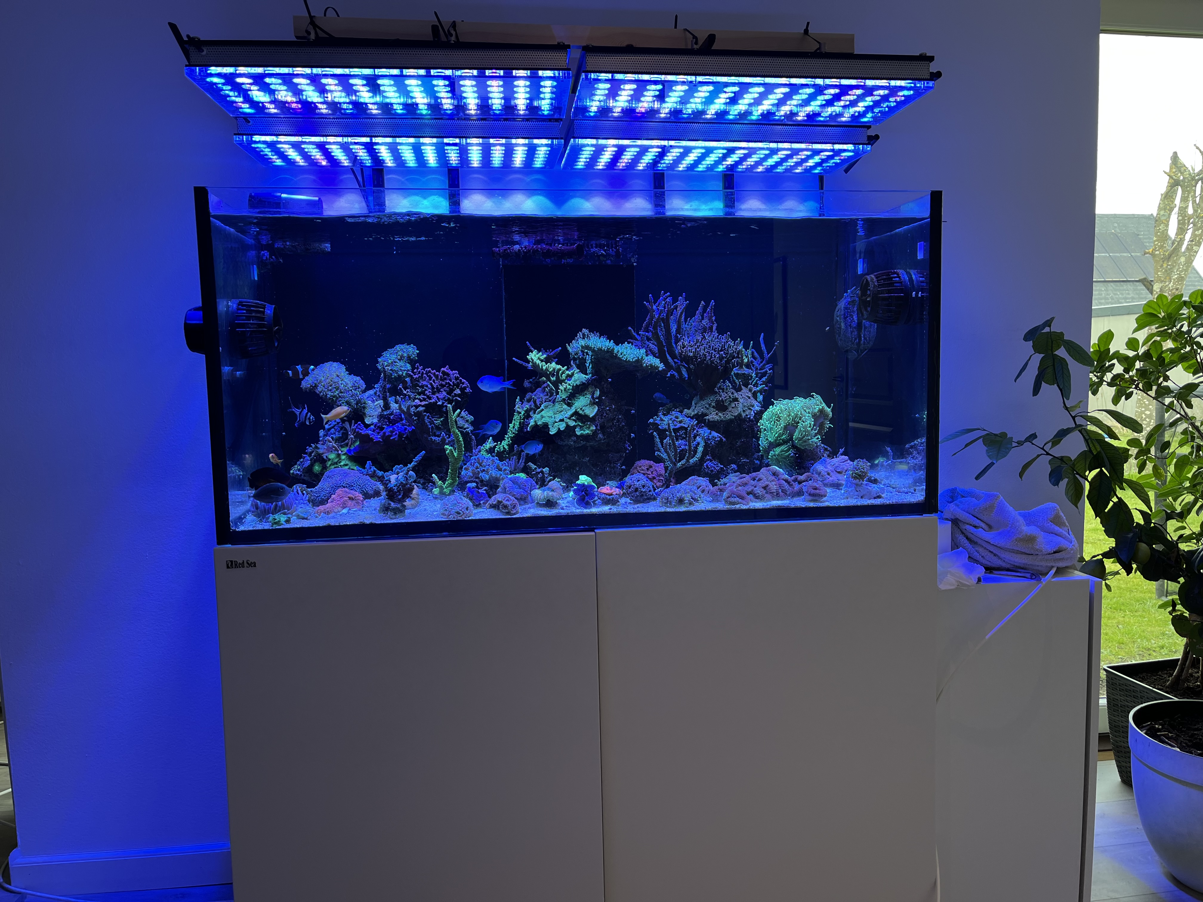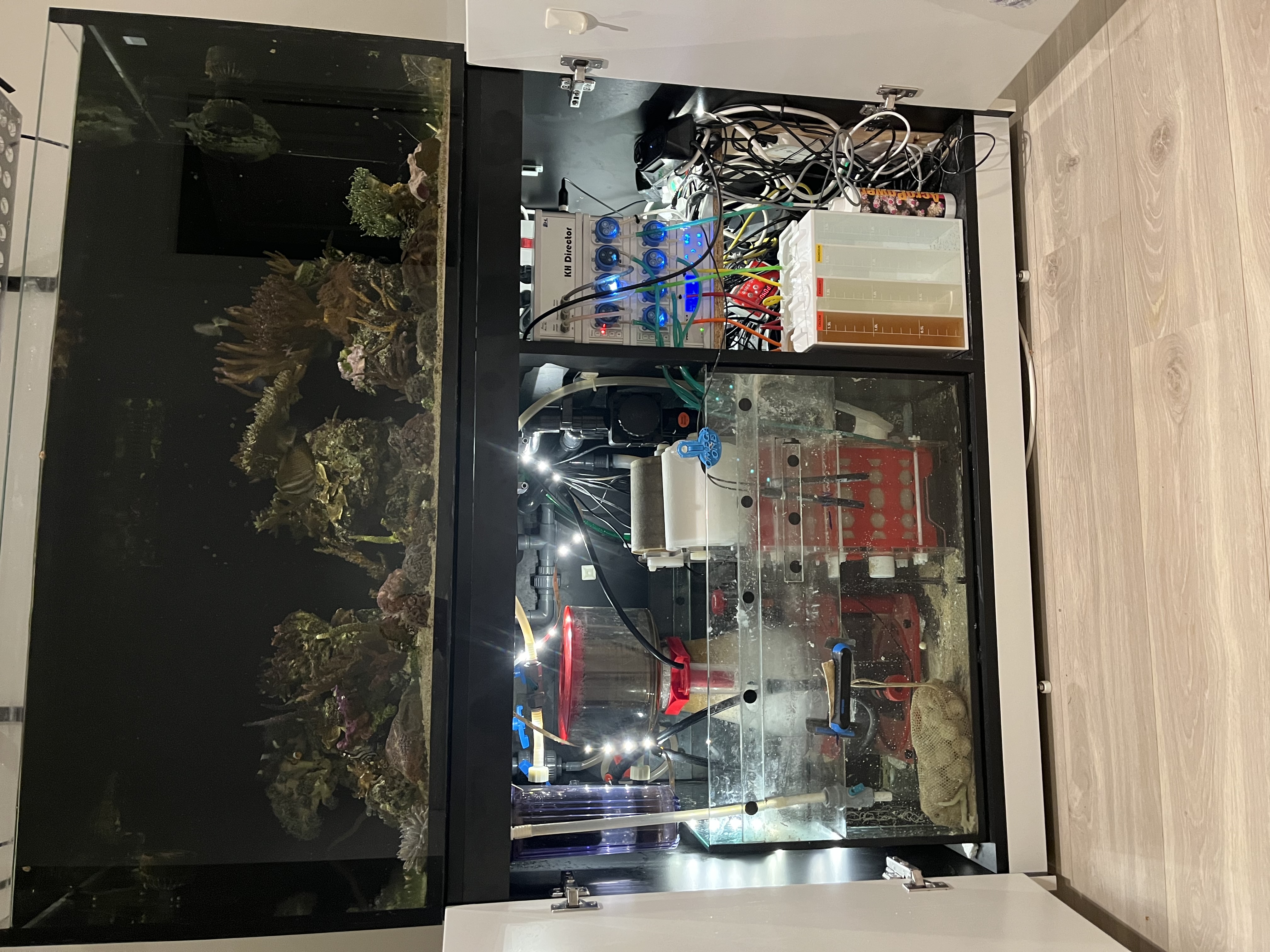 Jeg skal have køb to små skabe (noget Ikea gejl) der kan stå på hver side af akvarier, et der kan huse auto topoff vand beholderen og et hvor profiluxen med tilhørende AF Balling beholderen skal stå (og måske noget plankton bryg) så jeg kan benytte det ekstra rum under akvariet til kabelhåndtering.