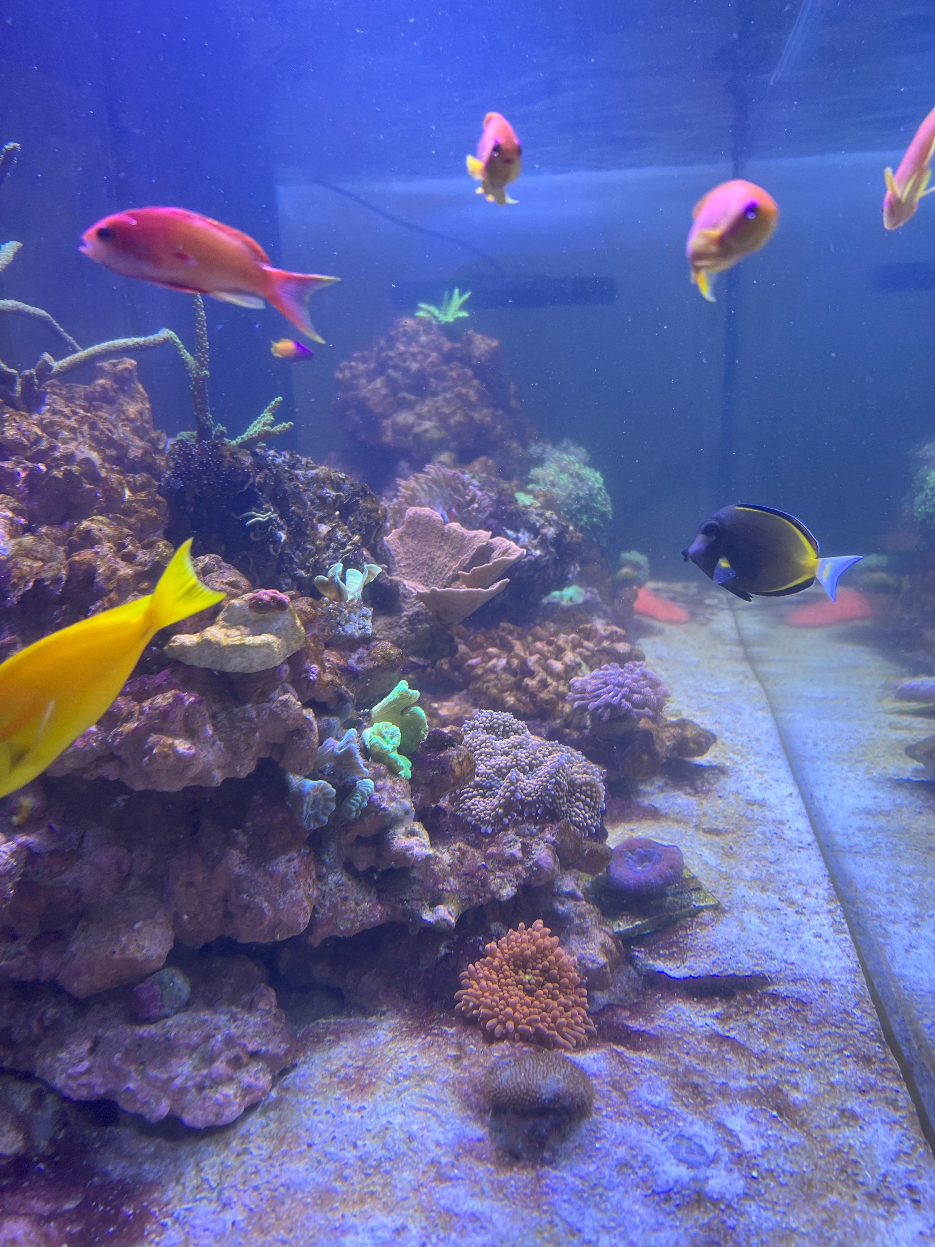 Jeg vil bl.a. bruge frags fra mit 325 liters, som har lidt af hvert. Bløde, LPS, SPS og fisk. Også BTA som har delt sig et par gange. Det har kørt i over 2 år og nogle af korallerne er blevet temmelig store. Mine kirurger ligeså, så jeg håber at kunne fange dem og give dem noget mere svømmerum.