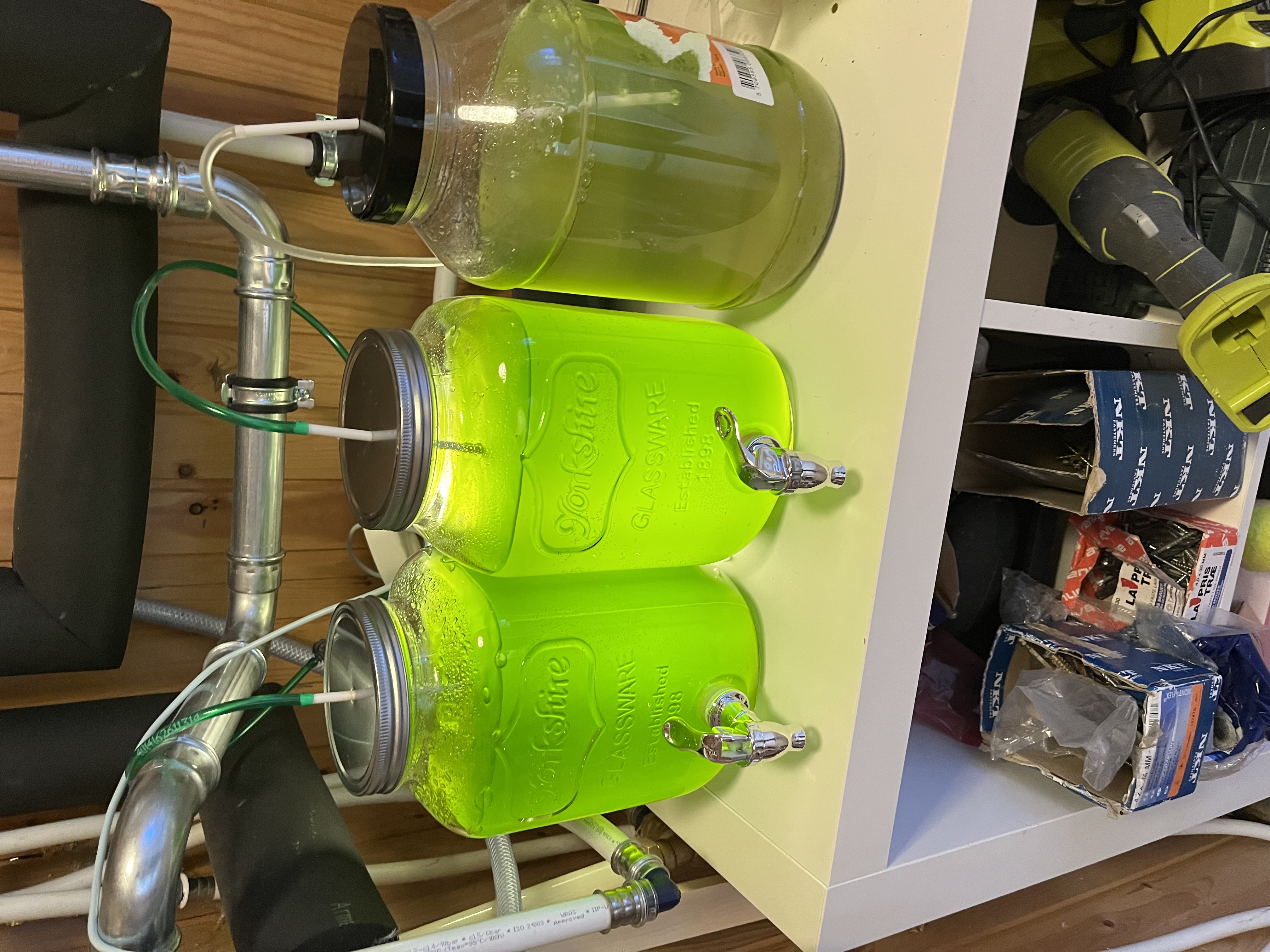 Fodring med hjemmelavet artemia (vandet har været helt grønt, men de må have spist sig igennem det for nu er det helt klart igen)