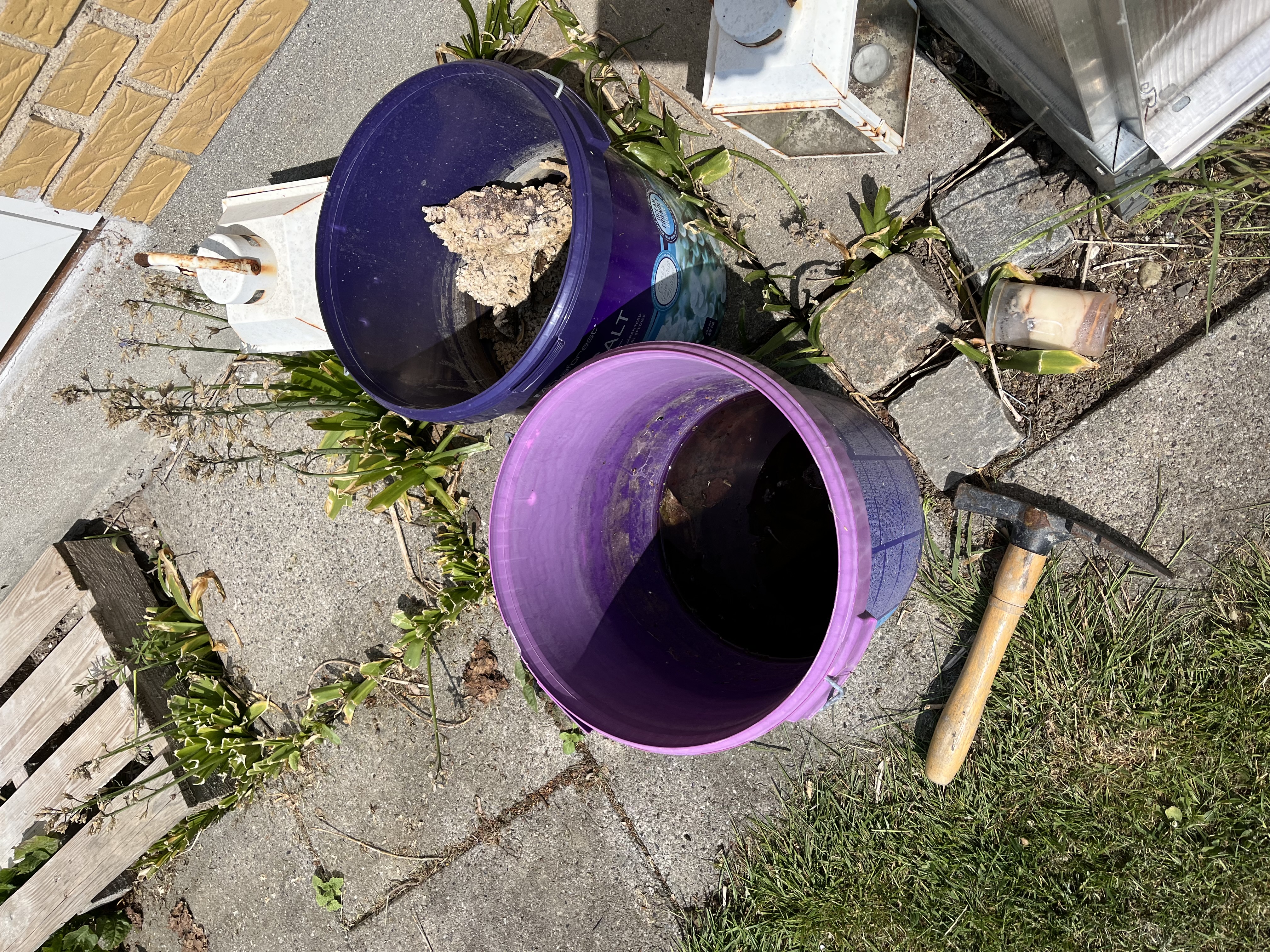 Så kom dagen hvor kulturen skulle splittes. Den der var gul blev smidt ud, den anden hældt op i en spand imens begge beholder blev renset og afsprittet.